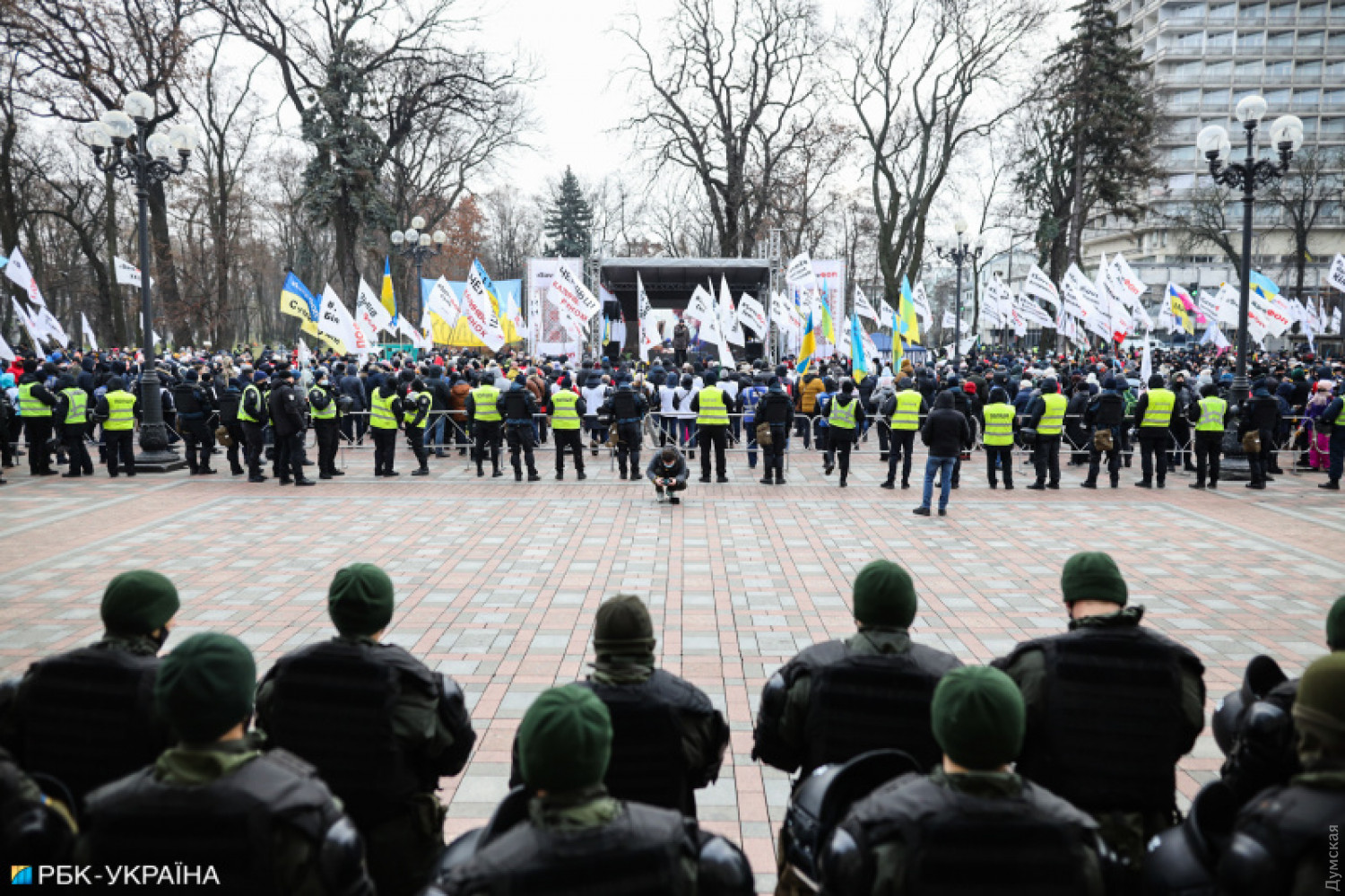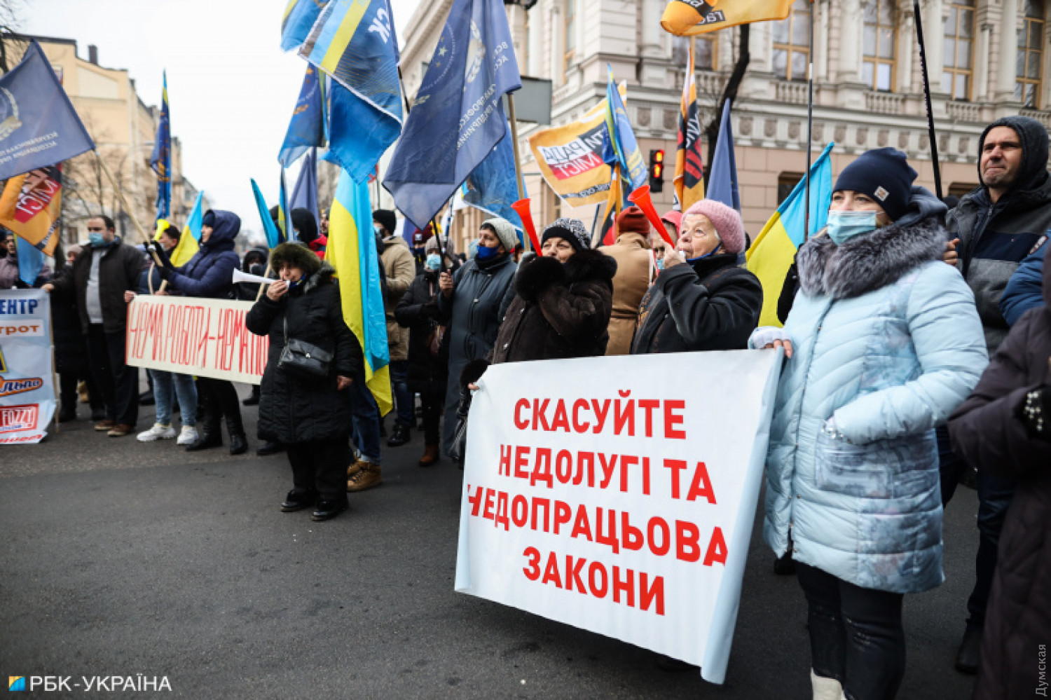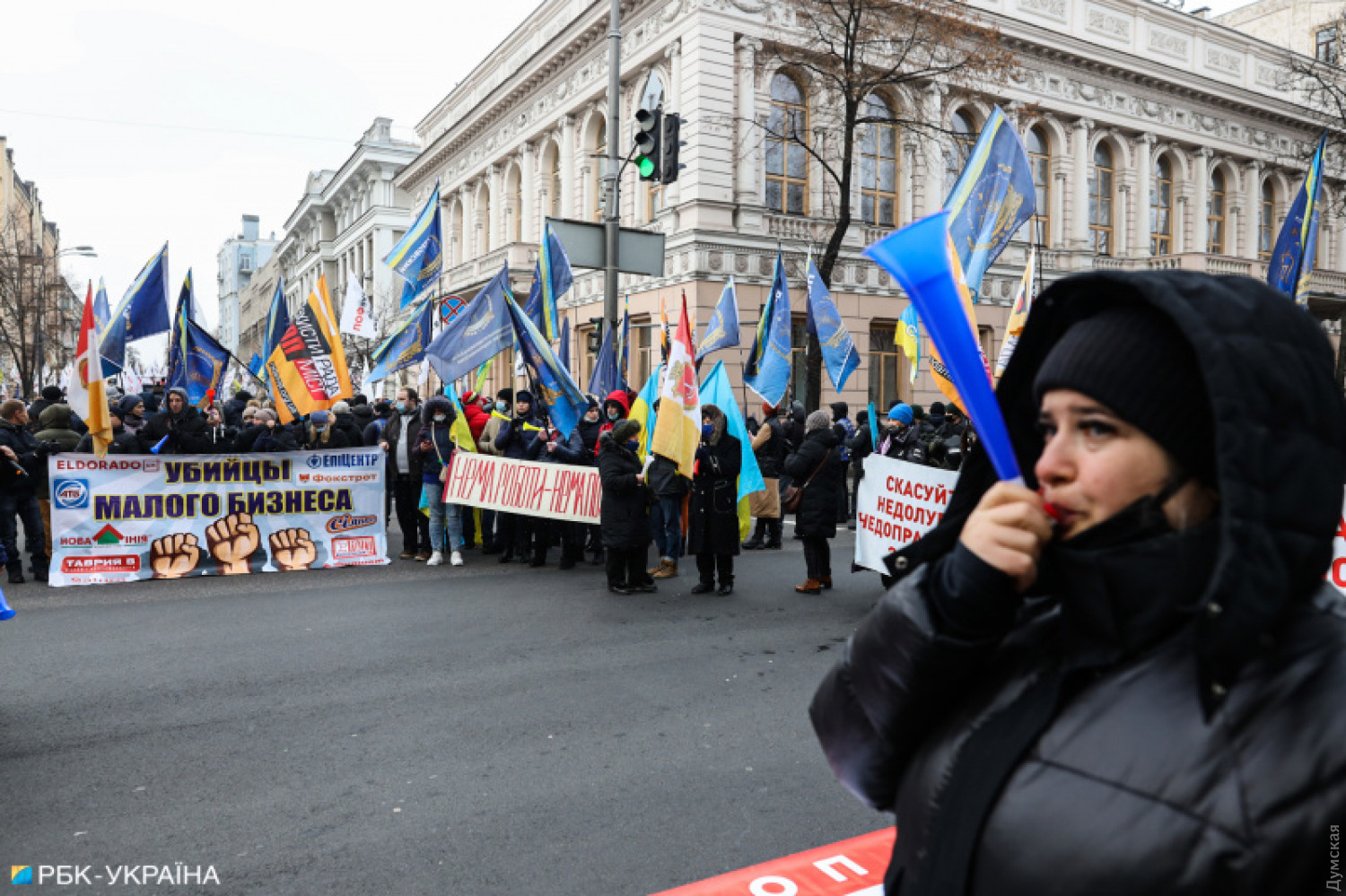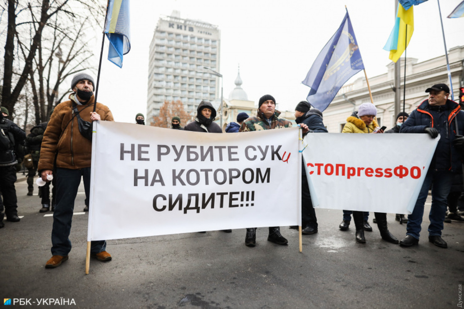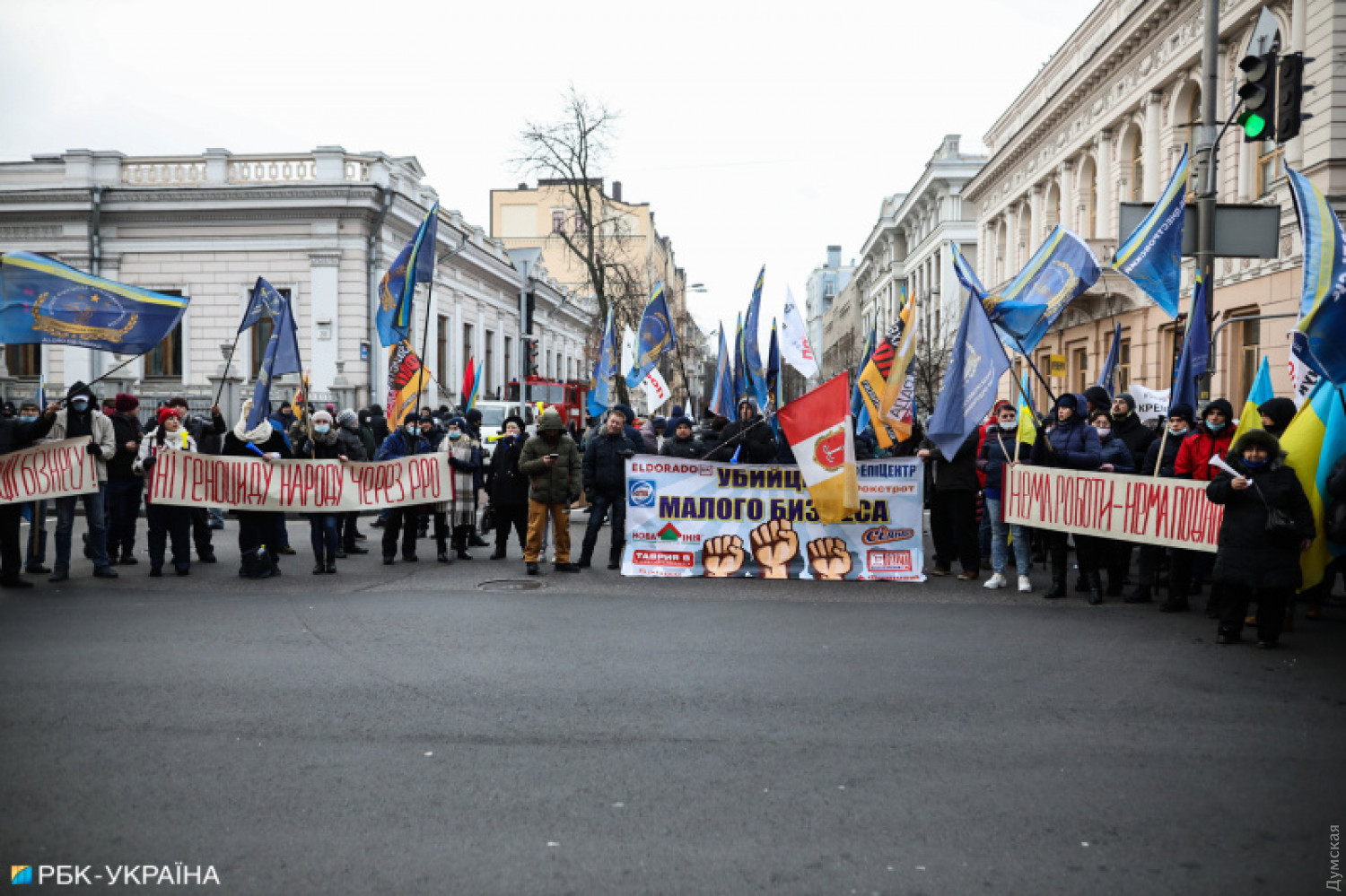 Сегодня под зданием Верховной рады Украины проходит митинг предпринимателей, которые требуют принятия законопроектов об упрощенной системе налогообложения малого и среднего бизнеса, а также отмены введения фискальных кассовых аппаратов. По информации СМИ, в акции принимают участие несколько тысяч человек. В связи с митингом перекрыта улица Грушевского. Акция под названием «SaveФОП» организована «Союзом защиты предпринимателей». Люди выступают против альтернативного законопроекта №4313-д, который предусматривает отсрочку введения кассовых аппаратов на год. Из-за митинга полиция перешла на усиленный режим работы. На месте присутствуют сотрудники столичных правоохранительных органов, военнослужащие Национальной гвардии, полиция диалога, взрывотехники и представители других структурных подразделений системы Министерства внутренних дел. Фото: РБК СМЕРТЬ РОССИЙСКИМ ОККУПАНТАМ! Заметили ошибку? Выделяйте слова с ошибкой и нажимайте control-enter |