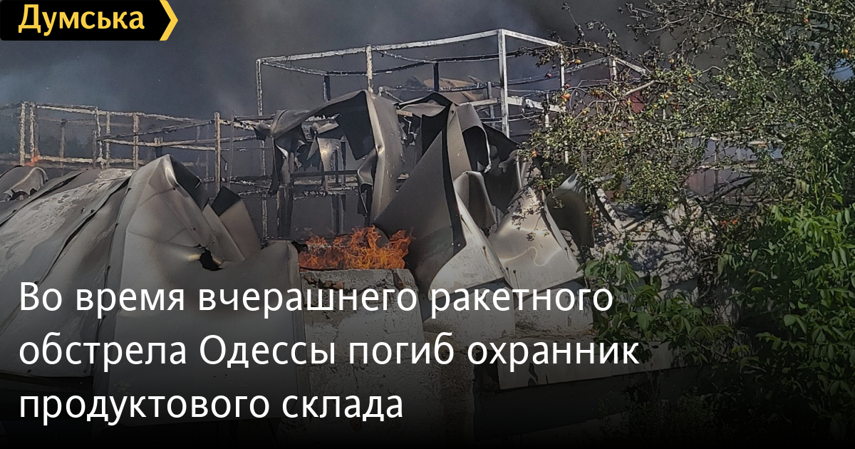 В результате вчерашнего ракетного удара по Одессе погиб охранник логистического продуктового склада.