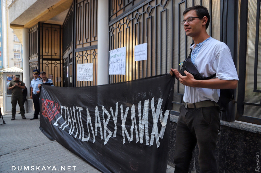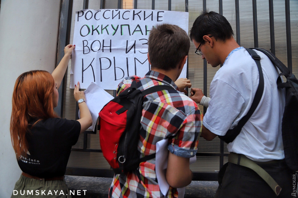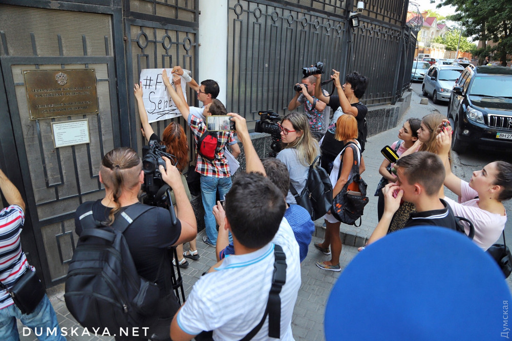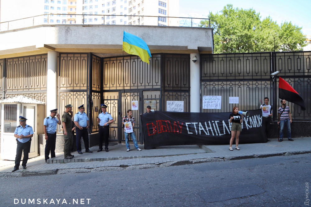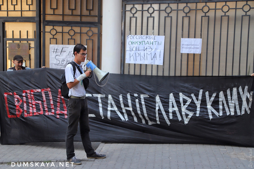Акция в поддержку украинских граждан, которые незаконно удерживаются российскими властями, прошла сегодня под стенами генконсульства страны-агрессора в Одессе.