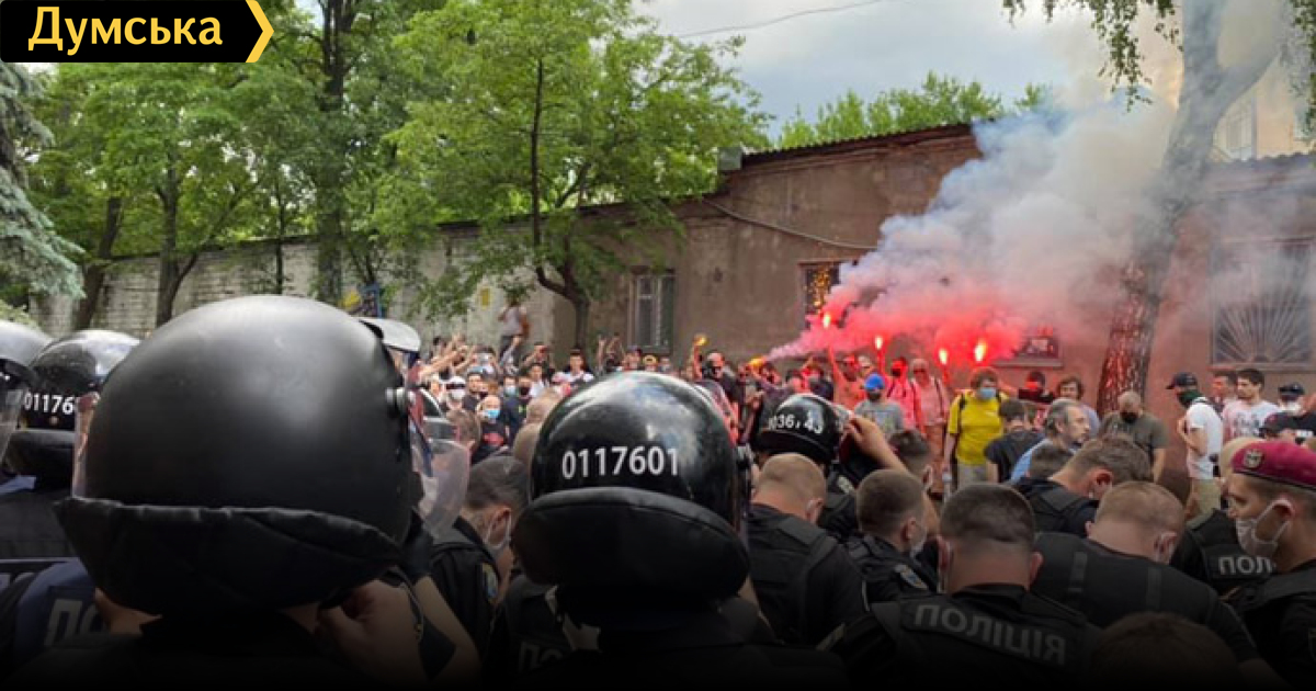 «Один из участников устроил конфликт с журналистами. Когда полицейские пытались задержать правонарушителя, возникла потасовка. Наиболее активных участников задержали, их доставляют к управлению полиции для установления личных данных и предоставления объяснений. После первоочередной проверки будет дана правовая квалификация их действий», — отметили в Нацполиции.