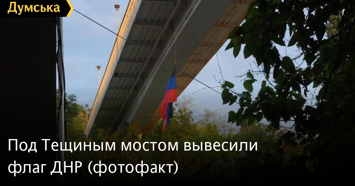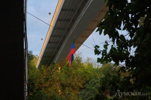 Под Тещиным мостом неизвестные развернули флаг так называемой «донецкой народной республики».