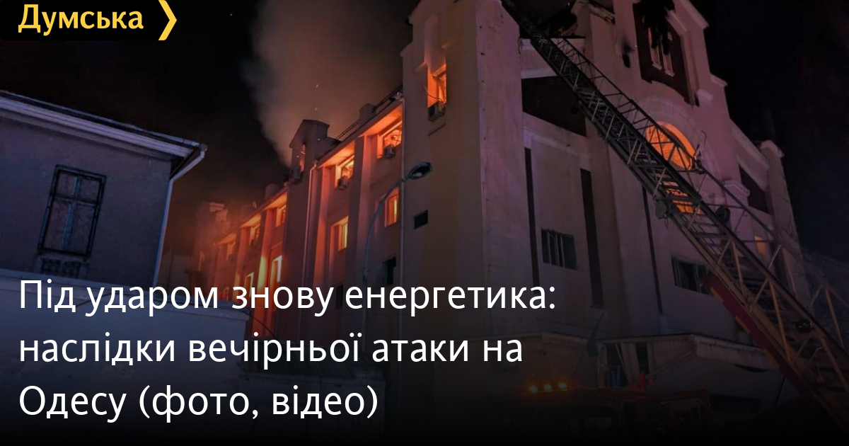 Під ударом знову енергетика: наслідки вечірньої атаки на Одесу (фото, відео)Енергетична та цивільна інфраструктура Одеси стали цілями чергового удару ворога 7 березня. Внаслідок атаки безпілотниками пошкоджено також обʼєкти промисловості та житлові будинки, повідомив мер Геннадій Труханов. Крім того, зруйновано ангар із сільськогосподарською технікою, чотириповерхову промислову будівлю, АЗС, СТО, автосалон та щонайменше вісім автомобілів. Інформації про постраждалих немає. Це вже сьомий удар по енергосистемі області за три тижні. Без електропостачання залишилось майже півтори тисячі місцевих жителів.