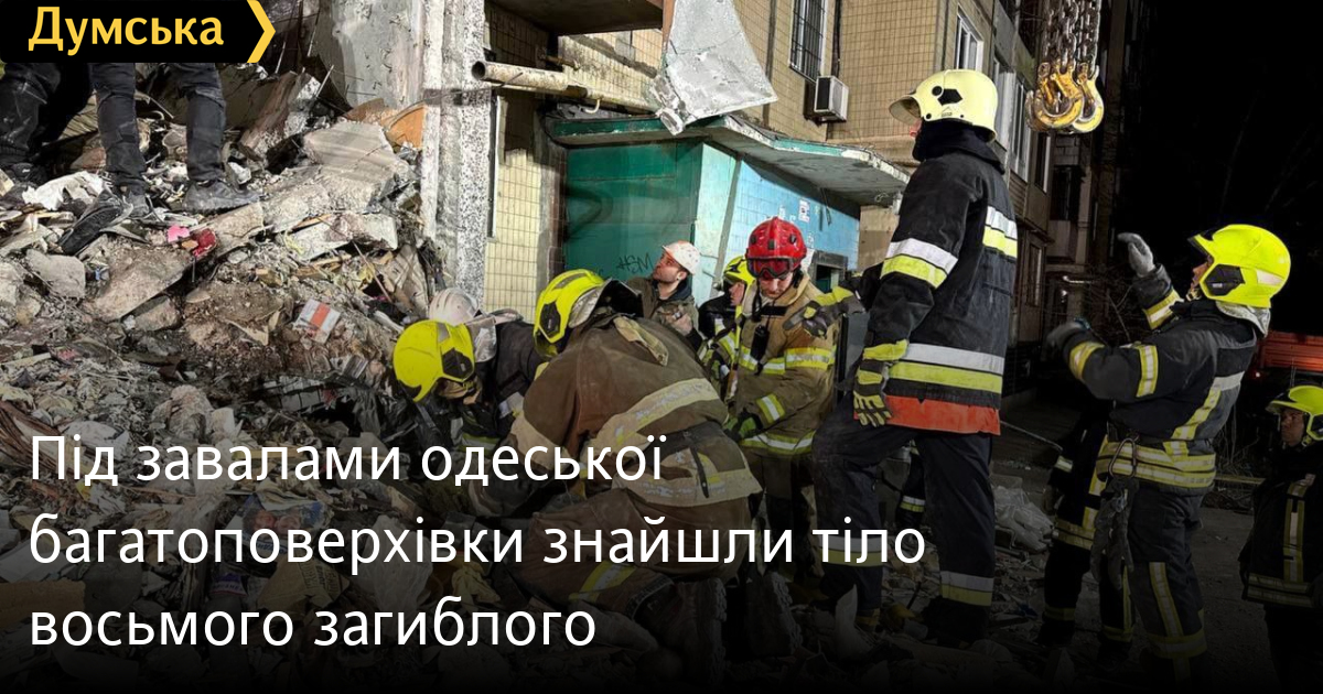 Тіло восьмого загиблого внаслідок удару окупантів по дев'ятиповерхівці в Пересипському районі Одеси дістали з-під завалів.