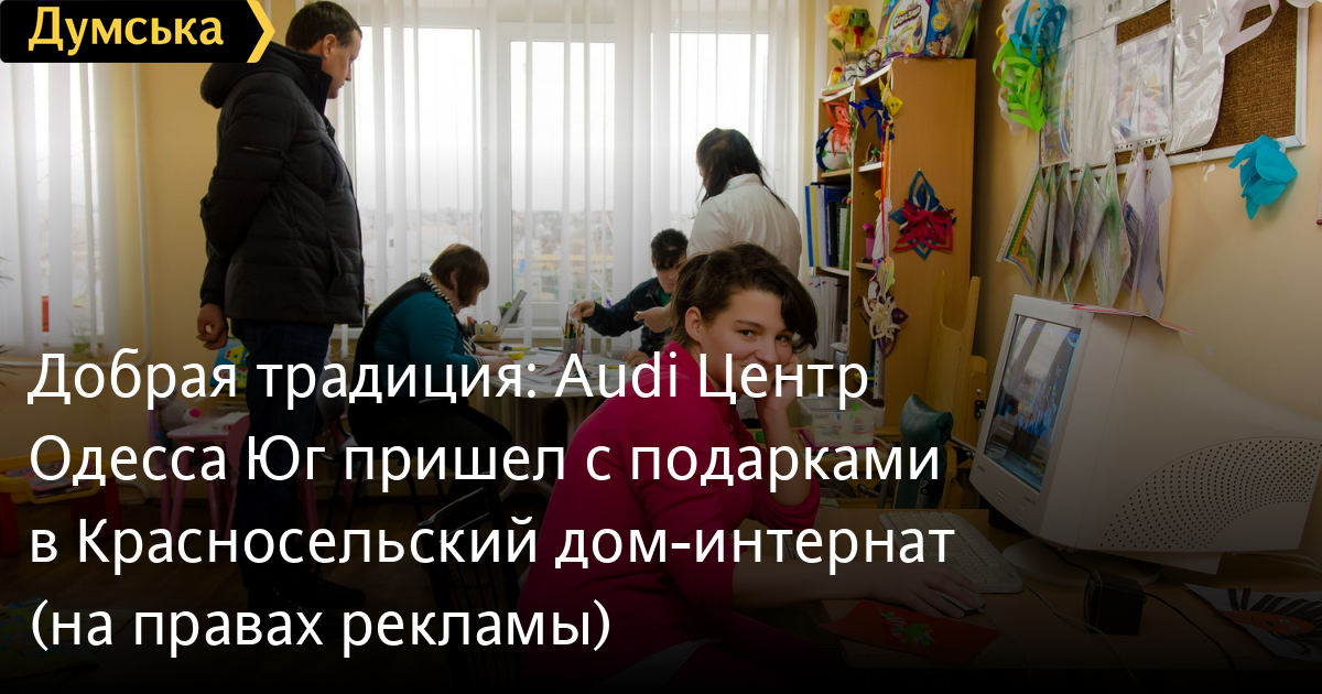 Добрая традиция: «Audi Центр Одесса Юг» пришел с подарками в Красносельский дом-интернат (на правах рекламы)В канун новогодних праздников основатель терминала «Audi Центр Одесса Юг« Максим Шкиль основал добрую традицию – оказывать помощь детям с ограниченными возможностями. Такую инициативу поддержали все сотрудники терминала и отправились к воспитанницам Красносельского дома-интерната. Сегодня здесь проживает 142 девочки в возрасте от 4 до 18 лет со сложными диагнозами, такими как эпилепсия и аутизм. С детьми работают не только воспитатели и медицинские сотрудники, а также логопед, реабилитолог и психотерапевт. «Первое, что бросается в глаза, это особая атмосфера семьи, которая царит в этом детском доме, доброжелательные и компетентные сотрудники. Старшие девочки всегда готовы прийти на помощь младшим или тем, кому она особенно нужна», — поделилась впечатлениями маркетолог «Audi Центр Одесса Юг« Наталья Береславская. Большинство воспитанниц заведения в силу индивидуальных особенностей не могут научиться читать и писать, но при этом развивают творческие способности: рисуют, вышивают бисером, поют и танцуют. «Они, как и все малыши, с нетерпением ждут новогодних и рождественских праздников. Очень любят, когда приходят гости, ведь это не только подарки, но и новый опыт общения, больше друзей и положительных эмоций», — объяснили гостям воспитатели. «Мы внутренне готовились к тому, что будет морально непросто. Но, приехав, ощутили такое количество душевного тепла, которое царит в глазах детей, что уехали с теплом и светлой радостью от того, что удалось хоть немного порадовать своим визитом и подарками этих замечательных детей», — поделился эмоциями от встречи коммерческий директор «Audi Центр Одесса Юг« Сергей Скрипка. В рамках благотворительной акции, проведенной совместно «Audi Центр Одесса Юг« и Благотворительным фондом Максима Шкиля «Разом до майбутнього», детям вручили сладкие подарки, фрукты, средства гигиены, а также бытовую технику, которая необходима для приготовления пищи воспитанницам дома-интерната. СМЕРТЬ РОССИЙСКИМ ОККУПАНТАМ! Заметили ошибку? Выделяйте слова с ошибкой и нажимайте control-enter |