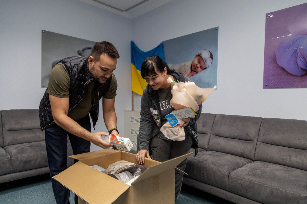 «Наш фонд спільно з друзями з Німеччини вирішили допомогти молодим сім'ям, — розповів голова МБФ «Ваше місто» Ігор Федін. — Народження дитини — це важлива подія і доволі складний період у житті батьків, особливо зараз, коли в Україні триває війна. Наші партнери заповнили бокси найнеобхіднішими речами, які стануть у пригоді в перші тижні та місяці життя маленького українця та його матері».