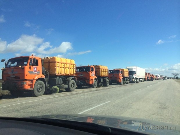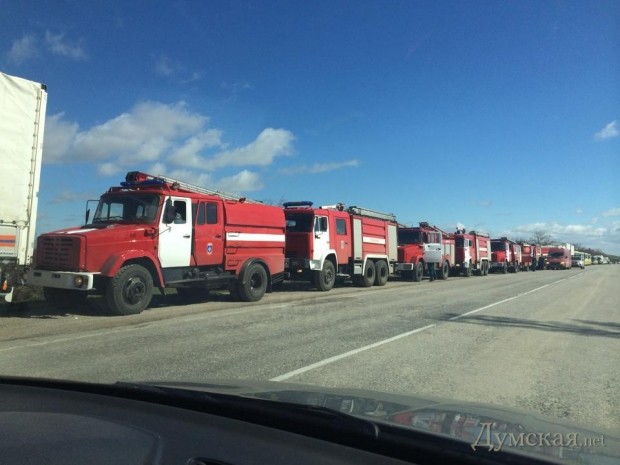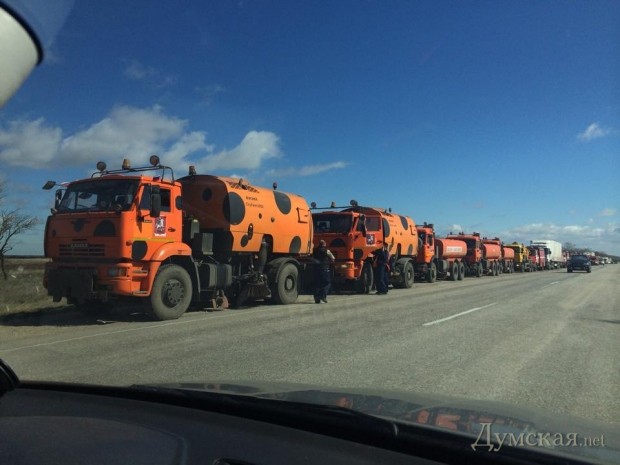 В Крыму замечена большая колонна гражданской спецтехники — коммунальной, пожарной, мусороуборочной и т.д.