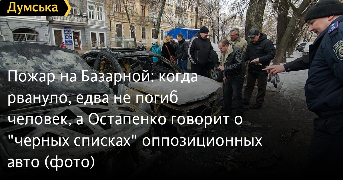 Корреспондент «Думской» побывал на Базарной улице, где рано утром сгорели четыре автомобиля, включая машину лидера фракции «Фронта перемен» в горсовете Александра Остапенко.