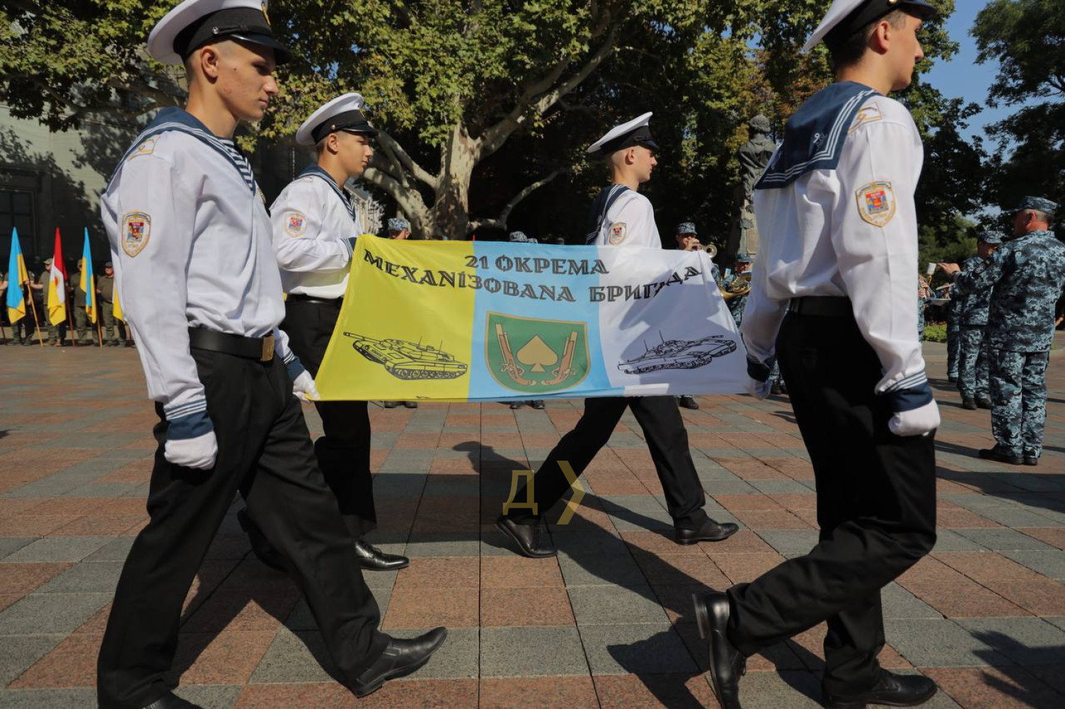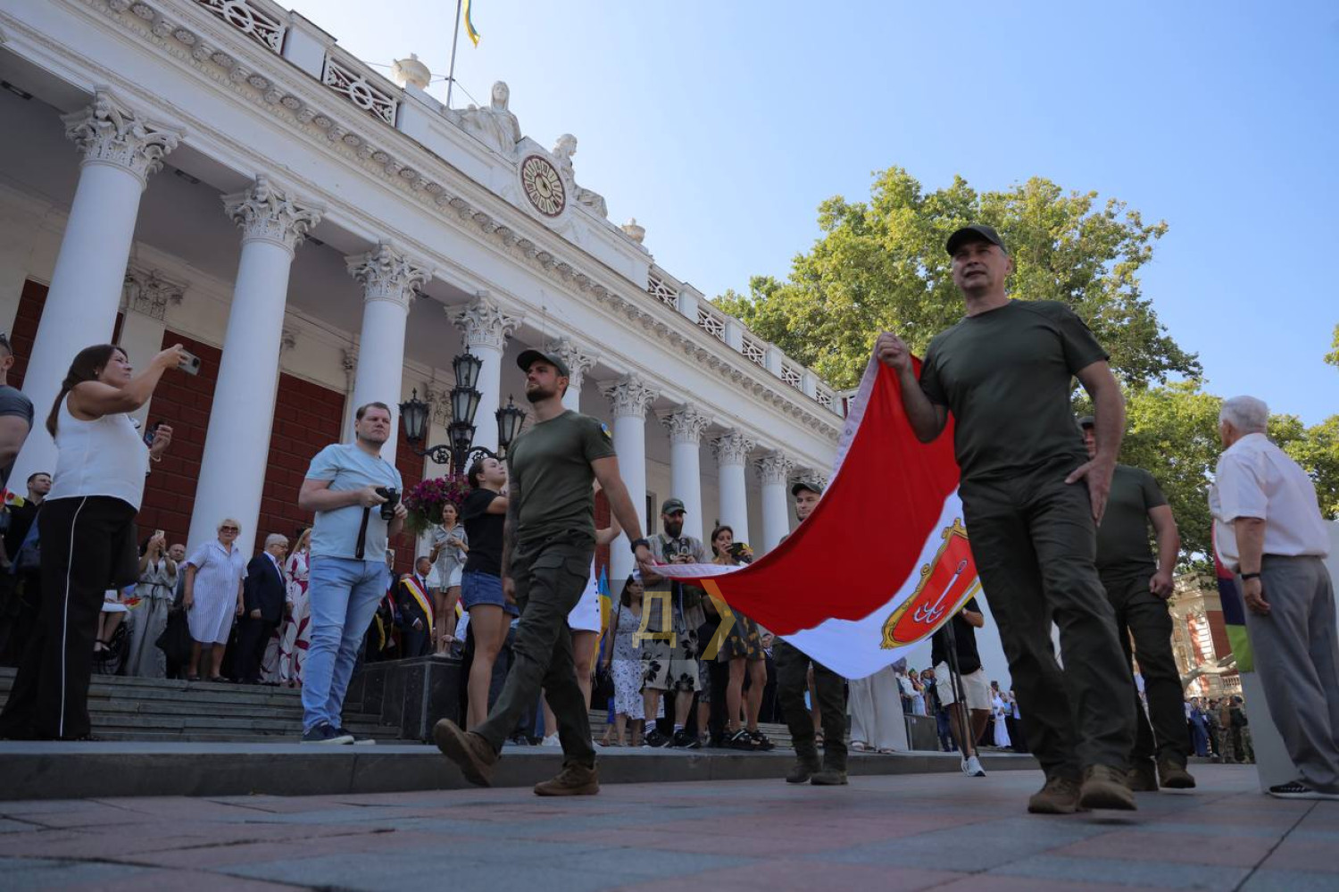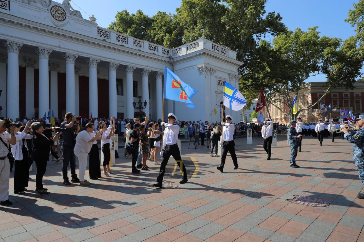 З урочистого підняття прапора Одеси на Біржовій площі розпочалося святкування Дня міста. Як передає кореспондент «Думської», підняттю прапора передував прохід військовослужбовців, які несли прапори різних родів військ і підрозділів Сил оборони України, зокрема, ВМС, СБУ, Держприкордонслужби, 3-ї штурмової бригади, 21-ї механізованої бригади тощо.