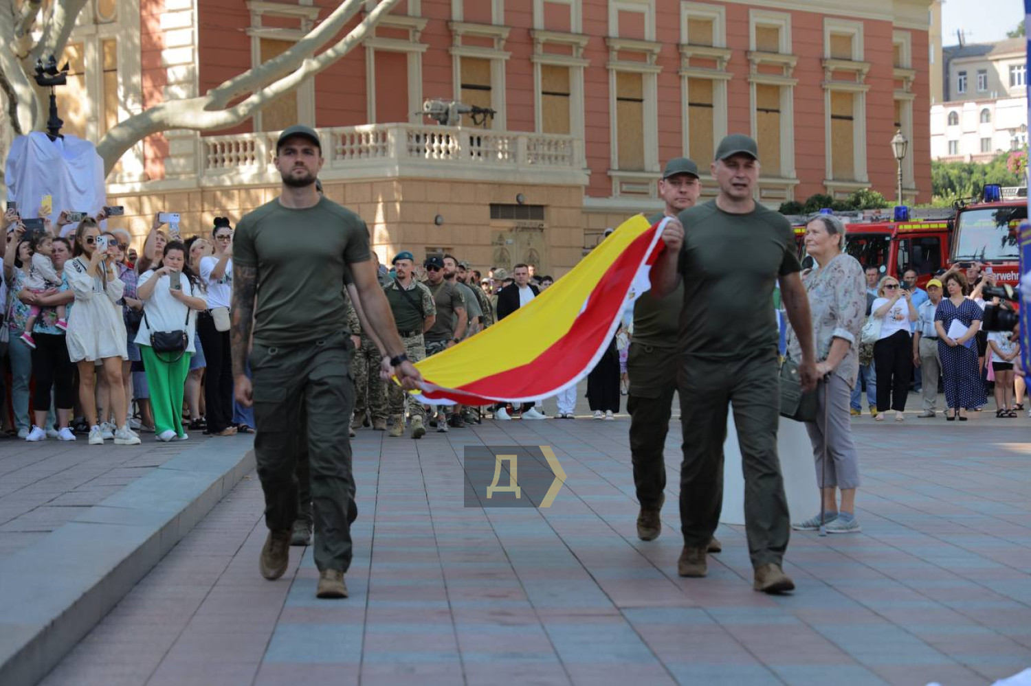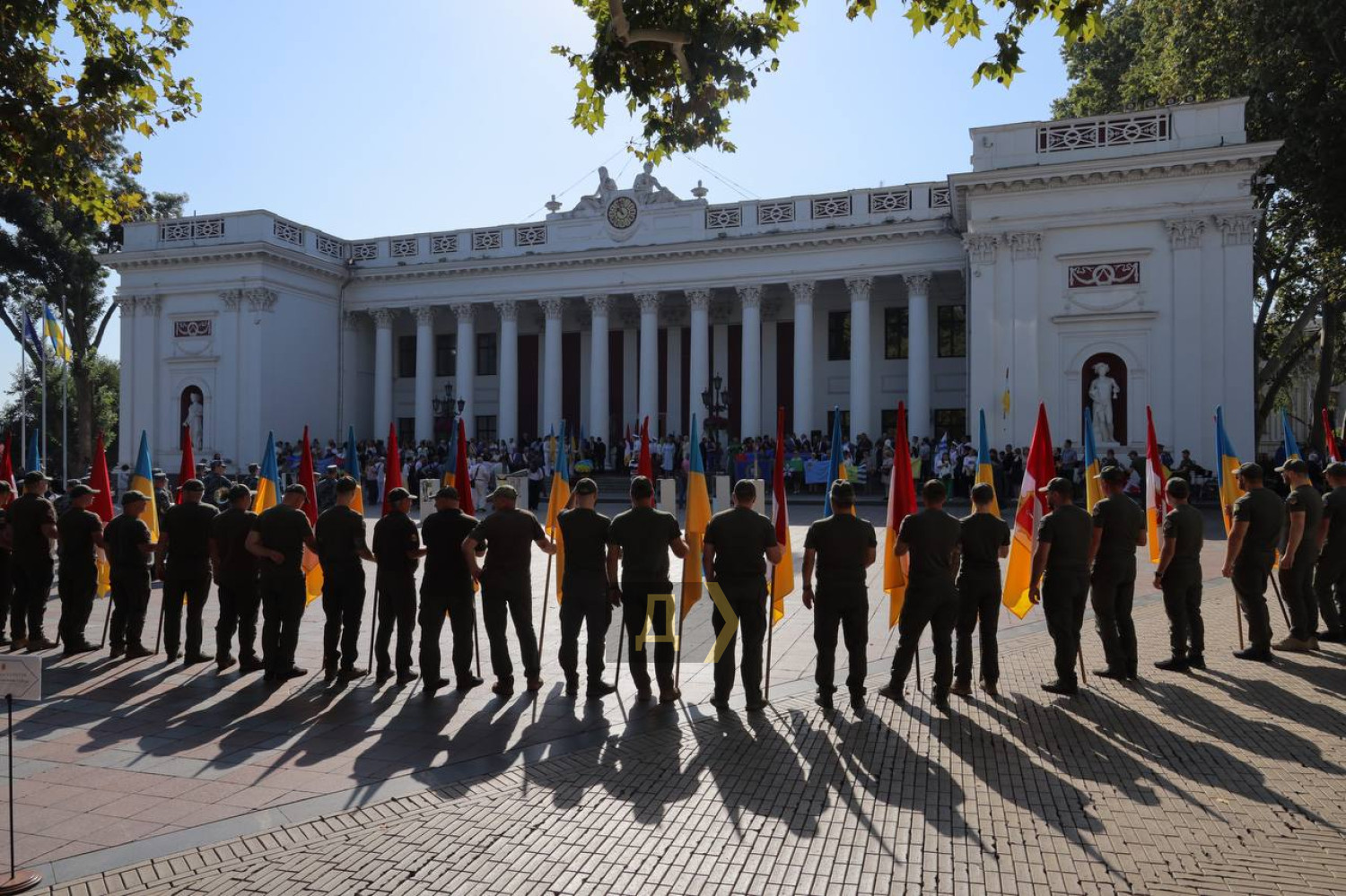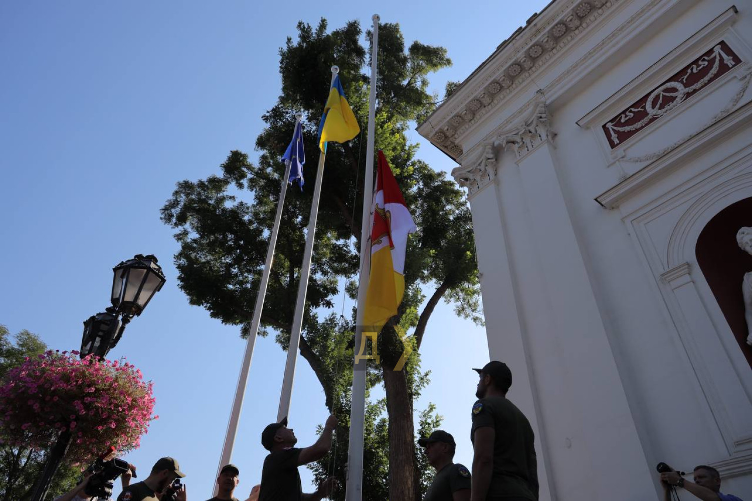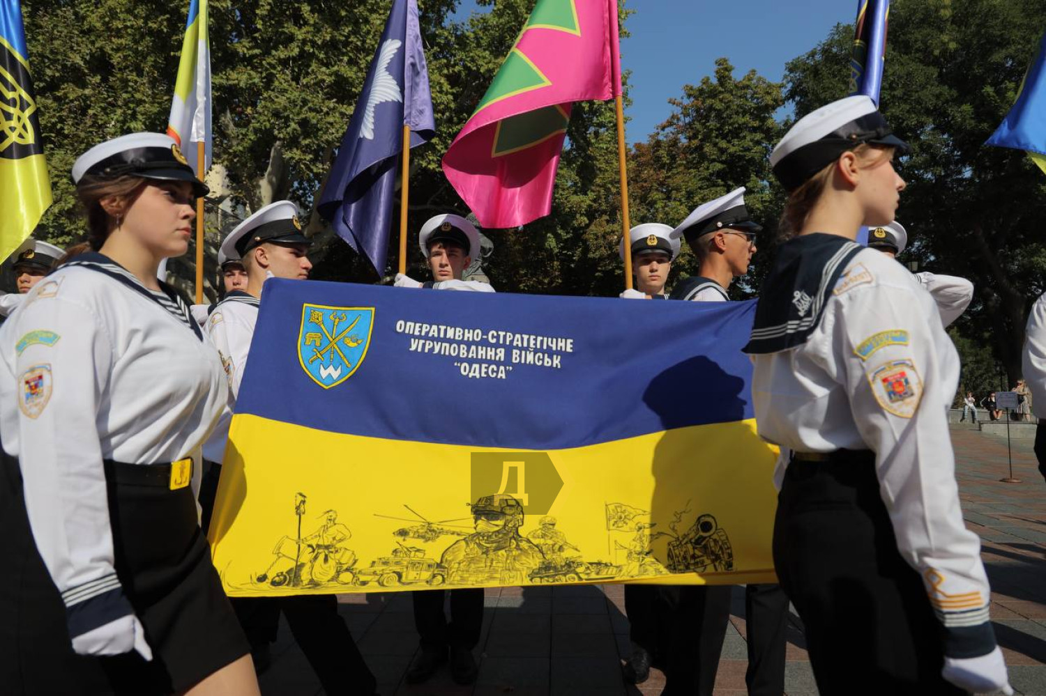 З урочистого підняття прапора Одеси на Біржовій площі розпочалося святкування Дня міста. Як передає кореспондент «Думської», підняттю прапора передував прохід військовослужбовців, які несли прапори різних родів військ і підрозділів Сил оборони України, зокрема, ВМС, СБУ, Держприкордонслужби, 3-ї штурмової бригади, 21-ї механізованої бригади тощо.