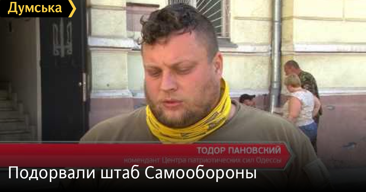 Очередной взрыв прогремел в ночь на третье августа. На этот раз неизвестные подорвали штаб «Самообороны Одессы». Это случилось в начале четвертого утра, на территории были люди. Чудом никто не пострадал. В общественной организации уверены – таким образом их хотят запугать. Милиция квалифицировала произошедшее как «умышленное повреждение имущества». Светлана Меркулова – далее. СМЕРТЬ РОССИЙСКИМ ОККУПАНТАМ! Заметили ошибку? Выделяйте слова с ошибкой и нажимайте control-enter Думская ТВ. Сюжеты: