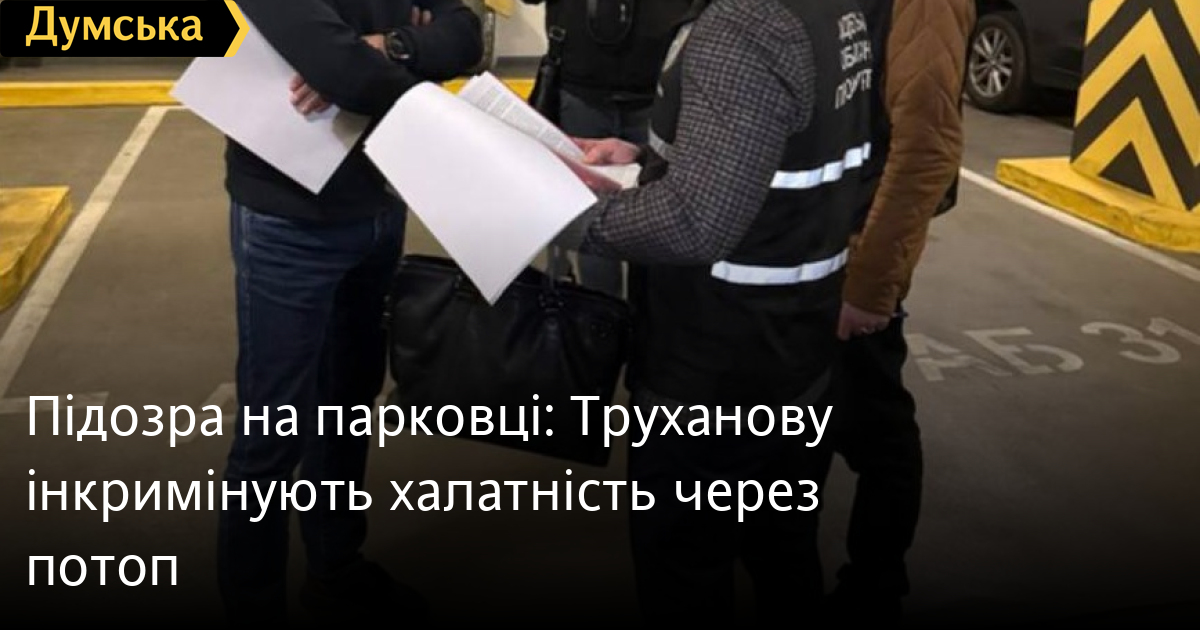 Підозра на парковці: Труханову інкримінують халатність через потопПрокуратура вручила Геннадію Труханову підозру у службовій халатності. Як повідомила журналістка Ірина Гриб, це сталося на парковці житлового комплексу «Ark Spa». Ексмеру Одеси інкримінують ч.3 ст.367 Кримінального кодексу України — службова недбалість, що спричинила тяжкі наслідки. Йдеться про масштабне підтоплення міста. Сьогодні правоохоронці проводять обшуки у працівників мерії. За інформацією Ірини Гриб, завтра суд обиратиме Труханову запобіжний захід. Очікуються також нові підозри та можливі затримання кількох високопосадовців. ОНОВЛЕНО 22:27 Підозри отримали 9 осіб. Крім Труханова, серед них заступники міського голови Анна Позднякова та Валерій Силін, директор КП «Міські дороги» Вадим Тодійчук та директор департаменту міського господарства Леонід Гребенюк. Нагадаємо, 30 вересня Одеса зіткнулася з потужною зливою, яка призвела до підтоплення різних районів міста та спричинила людські жертви. 14 жовтня президент Володимир Зеленський анулював українське громадянство Геннадія Труханова і розпорядився створити міську військову адміністрацію. СМЕРТЬ РОСІЙСЬКИМ ОКУПАНТАМ! Помітили помилку? Виділяйте слова з помилкою та натискайте control-enter