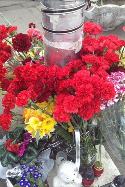 Сам мужчина рассказывает, что не принимает участия в митингах и акциях, а 2 апреля просто откликнулся на просьбу женщины помочь с лампадками и цветами.