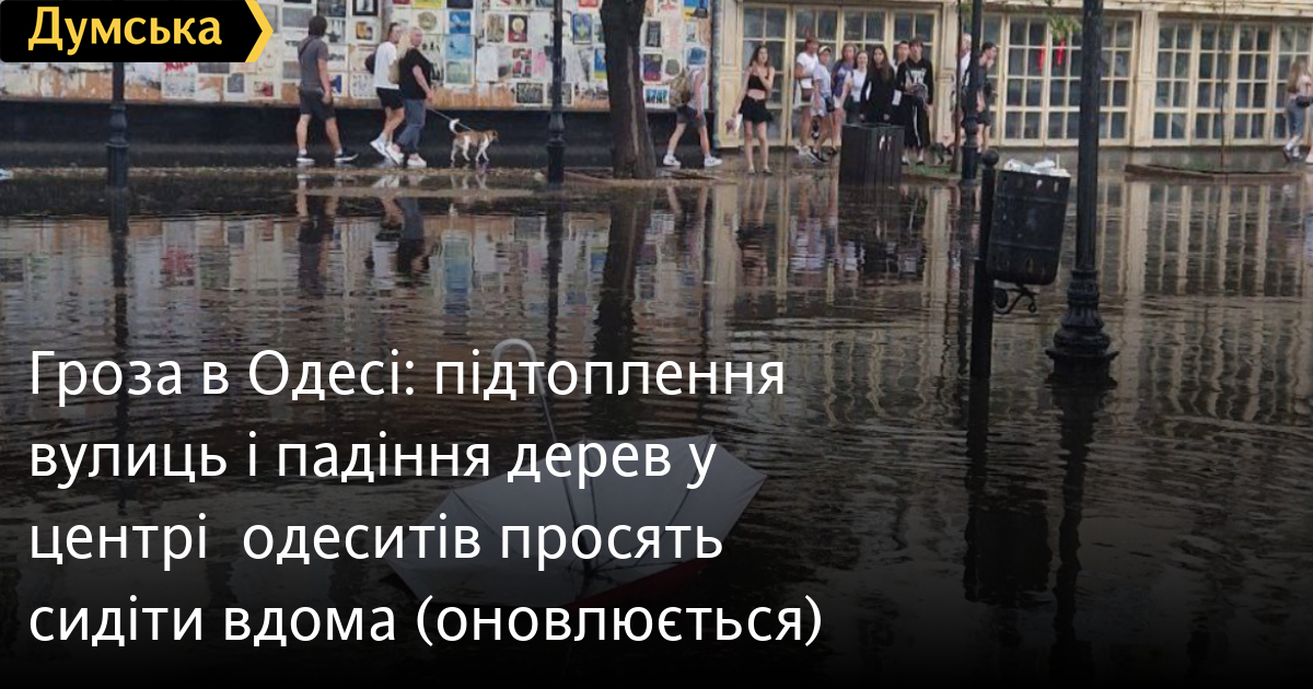 Гроза в Одесі: підтоплення вулиць і падіння дерев у центрі — одеситів просять сидіти вдома (оновлюється)