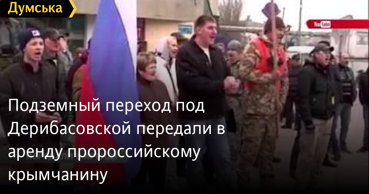 Подземный переход под Дерибасовской передали в аренду пророссийскому крымчанинуПодземный переход под Дерибасовской передали в аренду крымчанину. Как стало известно, что в 2014 году он занимался проросийской пропагандой, а сейчас почти на три года завладел частью Одессы. СМЕРТЬ РОССИЙСКИМ ОККУПАНТАМ! Заметили ошибку? Выделяйте слова с ошибкой и нажимайте control-enter Думская ТВ. Сюжеты: