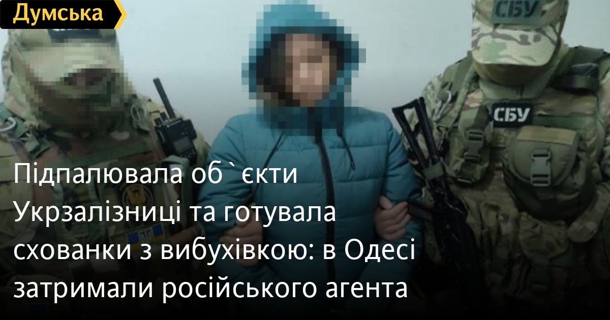 Агента російської військової розвідки (гру), яка готувала схованки зі зброєю та компонентами для вибухівки, а також підпалювала об'єкти «Укрзалізниці», затримали в Одесі. Як повідомили у пресслужбі обласного управління СБУ, посібницею ворога виявилася 32-річна місцева жителька, яку завербували наприкінці минулого року. За завданням кадрового співробітника гру вона підпалила релейну шафу сигнальної установки та трансформаторну підстанцію на залізниці.