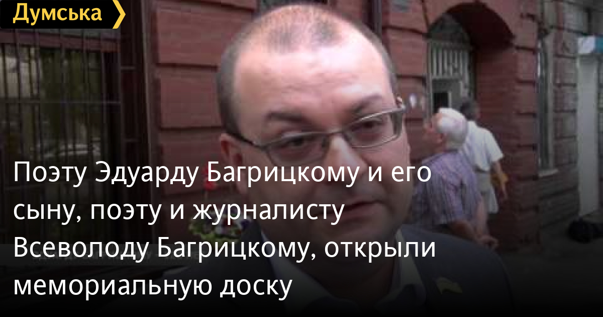 Поэту Эдуарду Багрицкому и его сыну, поэту и журналисту Всеволоду Багрицкому, открыли мемориальную доскуЗнаменитым одесским поэтам Эдуарду и Всеволоду Багрицким открыли мемориальную доску. Памятный знак установили на доме, где жили выдающиеся одесситы. Всю затратную часть взял на себя кандидат в депутаты Одесского городского совета от партии «Солидарность» Блок Петра Порошенко Эдуард Стась. Об еще одной достопримечательности Одессы в – репортаже Павла Репина. СМЕРТЬ РОССИЙСКИМ ОККУПАНТАМ! Заметили ошибку? Выделяйте слова с ошибкой и нажимайте control-enter Думская ТВ. Сюжеты: