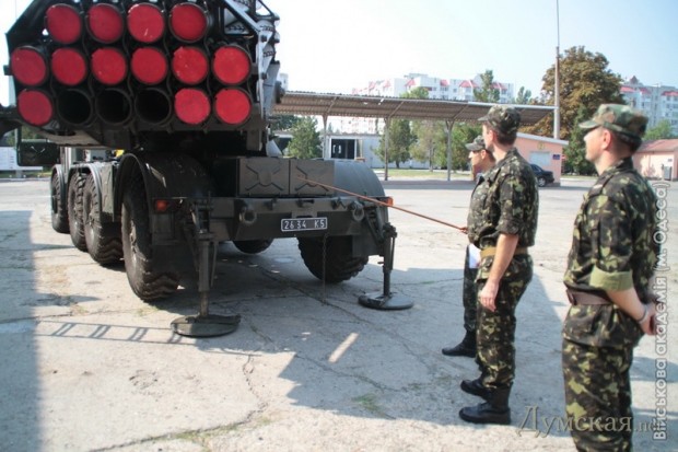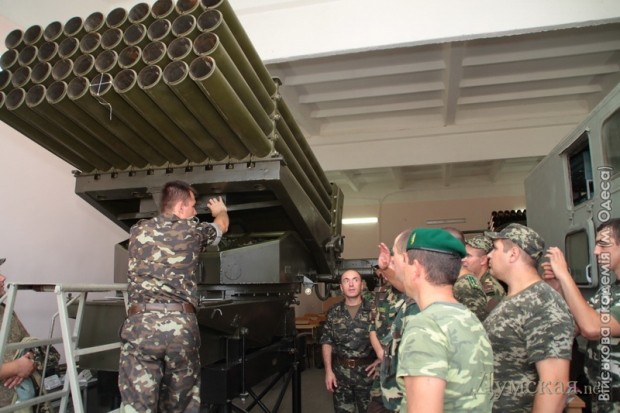 Сотрудники Государственной пограничной службы осваивают ракетно-артиллерийское вооружение в Военной академии Одессы.