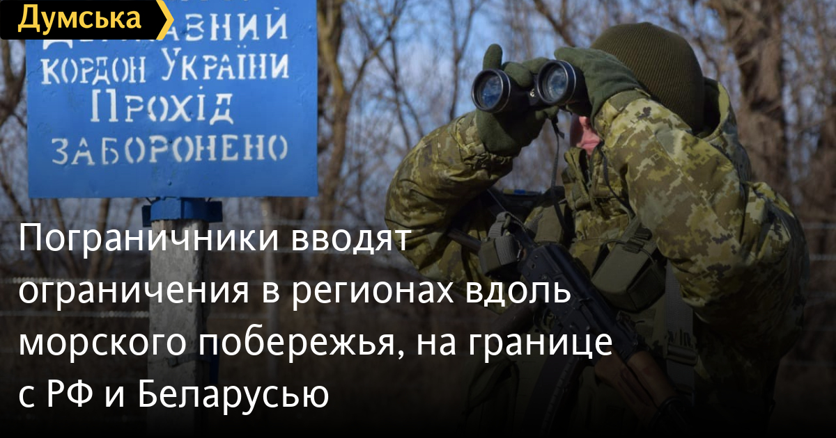 Госпогранслужба Украины вводит дополнительные ограничения в районах, которые находятся на побережье Черного и Азовского морей, а также вдоль границ РФ и Беларуси.