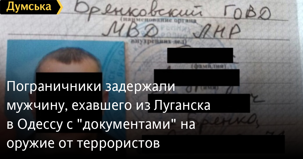 Как сообщили в пресс-центре Госпогранслужбы, мужчина ехал на машине из оккупированного Луганска в Одессу. «Документы» на травматическое оружие от так называемого «МВД ЛНР» выявили во время углубленного осмотра авто.