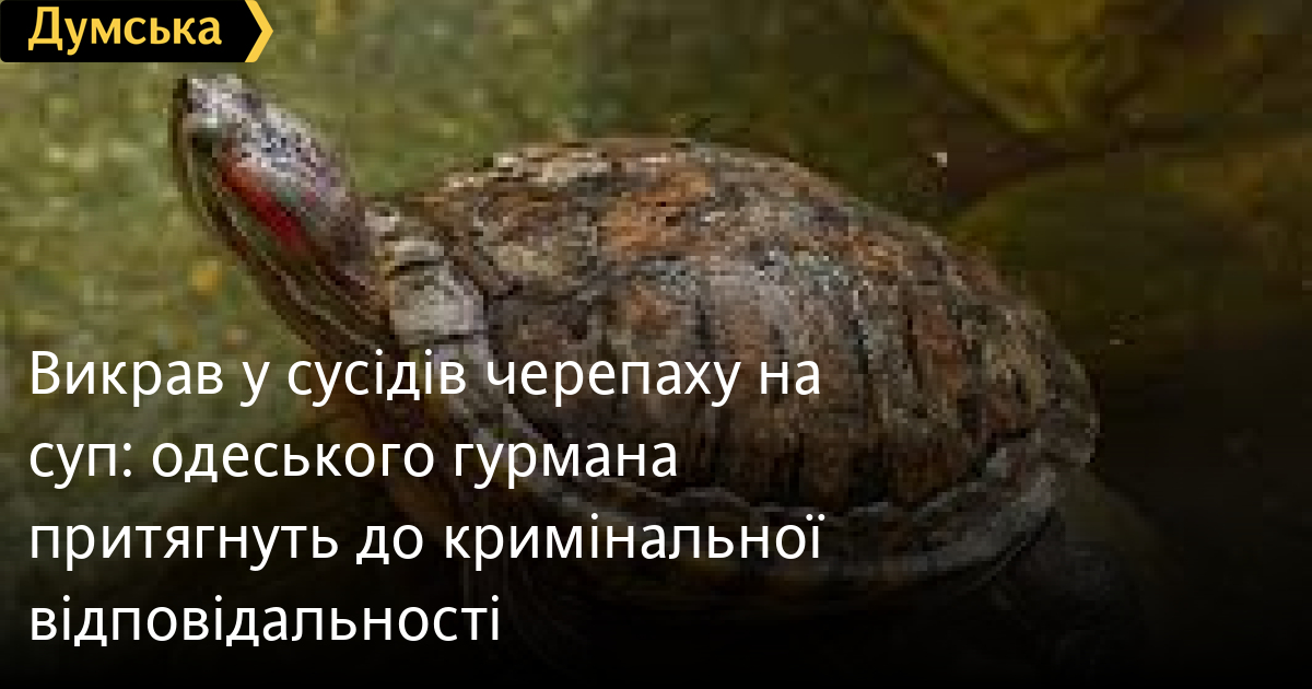 Викрав у сусідів черепаху на суп: одеського гурмана притягнуть до кримінальної відповідальності40-річному одеситу, який вкрав у сусідки черепаху для приготування супу, загрожує тюремне ув'язнення. Як розповіли в поліції, інцидент стався в одній із багатоповерхівок у Хаджибейському районі Одеси. Чоловік побачив на спільній із сусідами веранді двох червоновухих американських черепах у ванночці і вирішив приготувати екзотичну страву. Він викрав одну з них, кухонним молотком розбив панцир, а потім зварив і з'їв. Виявивши зникнення тварини, господиня звернулася до поліції. Правоохоронці, які приїхали на виклик, встановили, хто і навіщо викрав черепаху. Зловмисникові повідомили про підозру в крадіжці, вчиненій в умовах воєнного часу, а також у жорстокому поводженні з твариною, що призвело до її загибелі. Чоловікові загрожує до восьми років позбавлення волі. Помітили помилку? Виділяйте слова з помилкою та натискайте control-enter Новини по цій темі: 29 липня 2025: В Усатово Одеської області сталася перестрілка: поліція працює на місці (відео, оновлено) 28 липня 2025: П'яний на "Ягуарі" або гіпертонік? Звільнений топ-посадовець одеської поліції хоче повернутися на службу 19 червня 2025: Дівчинку, яку шукали сотні одеситів, знайшли вбитою: поліція працює з чоловіком, ймовірно причетним до загибелі 27 травня 2025: Увели гектар в університету: на Одещині засудили земельних аферистів, але без посадки і Хвоста |