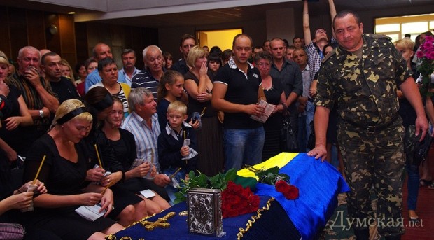 Прощание со вторым военнослужащим прошло в Доме офицеров. 40-летний командир бригады Воздушного командования «Юг» полковник Борис Кифоренко пал смертью храбрых под Иловайском.