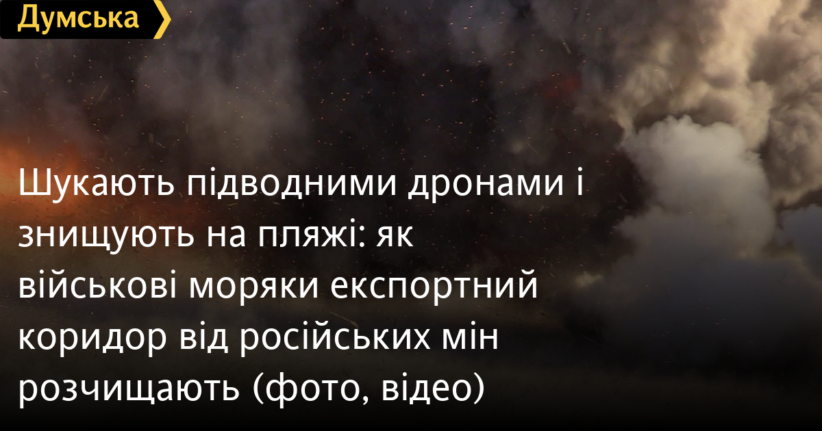 Шукають підводними дронами і знищують на пляжі: як військові моряки експортний коридор від російських мін розчищають (фото, відео)Функціонування экспортного коридору — це не лише результат дипломатії, а й щоденної праці українських військових. Моряки, водолази та піротехніки проводять десятки місій, щоб очистити шлях для мирних суден. Кореспондент «Думської» став свідком однієї з таких операцій, проведеної напередодні в Одеській області. Військові нейтралізували російську авіабомбу ФАБ-500, яку противник переробив на донну міну. Берег Чорного моря. Сонячні промені танцюють на хвилях, відкидаючи відблиски в об'єктив фотоапарата. Вітер грає з очеретом, у всьому відчувається наближення літа. Невеликий дикий пляж, де ще чотири роки тому лунав дитячий сміх, а повітря наповнювалося гомоном відпочивальників і запахом смаженого м'яса. Тепер тут немає відпочивальників — тільки військовослужбовці ВМС України, які борються з новою загрозою. Човен із водолазами розсікає хвилю і буксирує небезпечну знахідку до берега. Бійці підчіплюють троси до триноги і повільно витягують на пісок металеву тушу. На корпусі — сліди маркування російською мовою і велика цифра «500». Це фугасна авіабомба радянського виробництва ФАБ-500, яку росіяни масово застосовують проти українських військ і мирного населення. З 2023 року ворог модернізує ці боєприпаси, оснащуючи їх крилами та системами наведення (блоками УМПК). Так вони стають керованими і летять на відстань 70-80 км. А конкретно цей виріб став донною морською міною — для цього на нього встановили неконтактний детонатор, що спрацьовує при проходженні зверху судна. «Щоразу, коли ми отримуємо інформацію про замінування району, ми огороджуємо його, визначаємо як небезпечний, відправляємо туди спецпідрозділ із дронами для пошуку. Знаходимо об'єкти, класифікуємо їх та ідентифікуємо за допомогою дистанційних апаратів. Після цього або знищуємо, або витягуємо для подальшого вивчення», — розповідає військовослужбовець спецпідрозділу ВМС. Водолази частково розібрали бомбу, знешкодивши основну масу вибухівки ще під водою. Частину, що залишилася, підняли і доставили на берег для знищення. «Спочатку ми шукали об'єкт за допомогою гідролокатора, потім оцінювали його і приступали до підйому з використанням понтона, — розповідає військовий дайвер Валерій. — Підйом і транспортування зайняли близько шести годин. Основні труднощі — природні умови. В іншому все йшло за заздалегідь відпрацьованим планом». Валерій додає, що від початку повномасштабного вторгнення у нього і його напарників уже десятки успішно знешкоджених вибухонебезпечних об'єктів. Перед підривом піротехніки ретельно перевіряють знахідку. «Радіус ураження такої авіабомби під час вибуху на воді — до 300 метрів», — уточнює один із фахівців. За словами спікера Військово-морських сил України Дмитра Плетенчука, мінування моря — частина плану росії зі встановлення морської блокади нашої країни. На щастя, плану зірваного. «Це навмисні дії, спрямовані на те, щоб заблокувати роботу зернового коридору, — зазначив Плетенчук. — Ми впоралися із завданням, коридор працює, але роботи в нас вистачає: продовжуємо розчищати море, щоб розширювати можливості та підвищувати рівень безпеки». Після всіх підготовчих процедур залишки боєприпасу дистанційно знищують