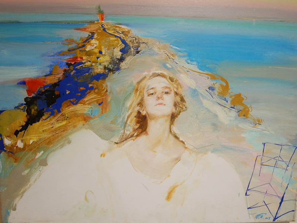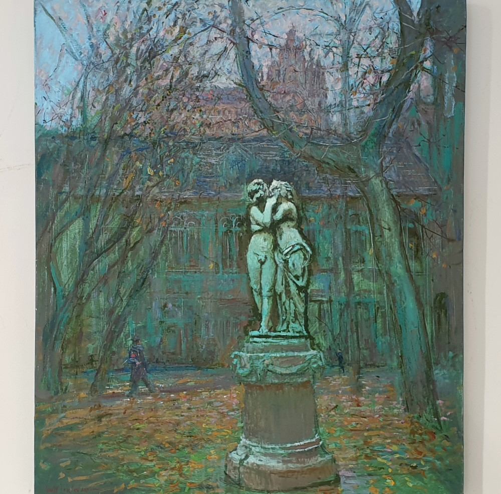 Поскольку все участники верят в победу Украины, на ярмарке представлены исключительно мирные сюжеты. Абстракции одессита Сергея Папроцкого, правда, можно толковать по-разному, но на то они и абстракции. Друг и коллега Сергея Петровича Игорь Варешкин представлен спокойными одесскими пейзажами середины девяностых. А художник Андрей Летнев принес на выставку самую свежую, еще не просохшую до конца живописную работу «Женский Тур Де Франс», уносящую зрителя на сто с лишним лет назад в благословенную Францию.