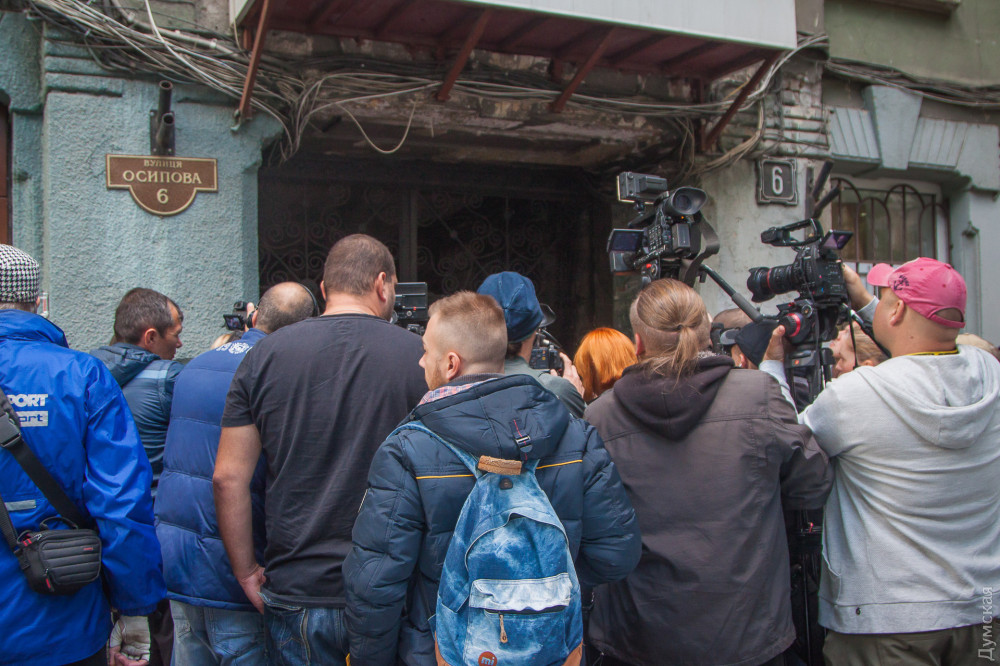 Одесский общественник Олег Михайлик сегодня дал короткое интервью журналистам — впервые после покушения. На пресс-конференцию у ворот своего дома (где все и случилось) активист пришел в бронежилете. Его охраняли сотрудники полиции.