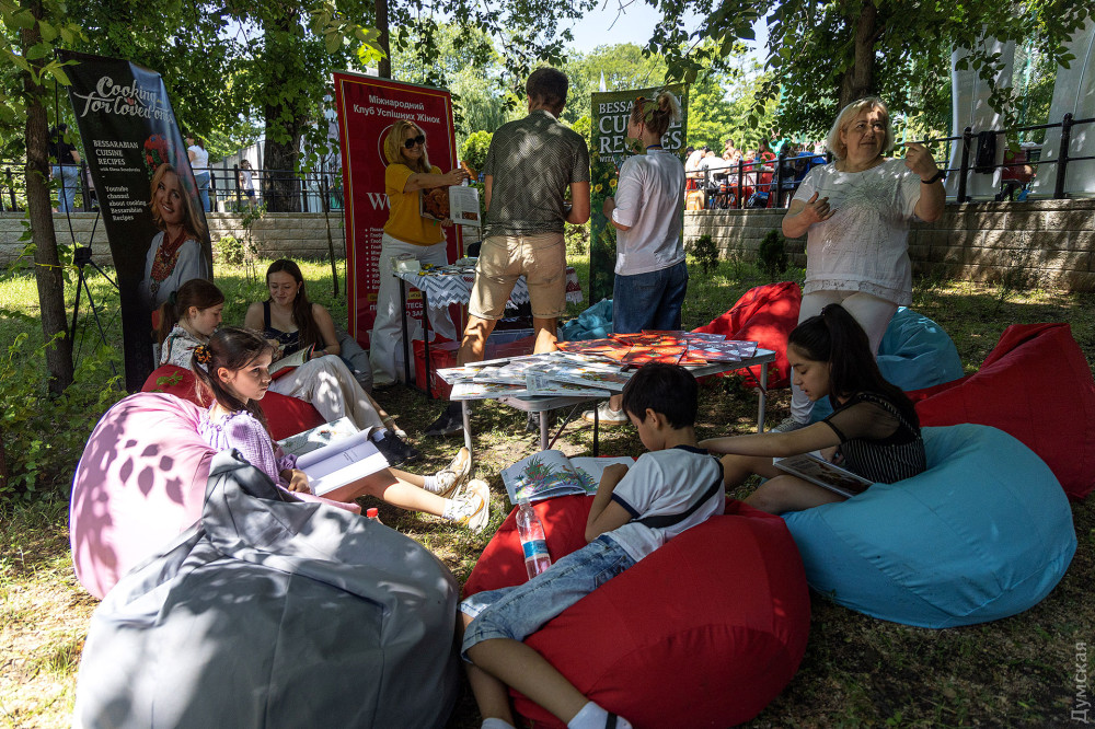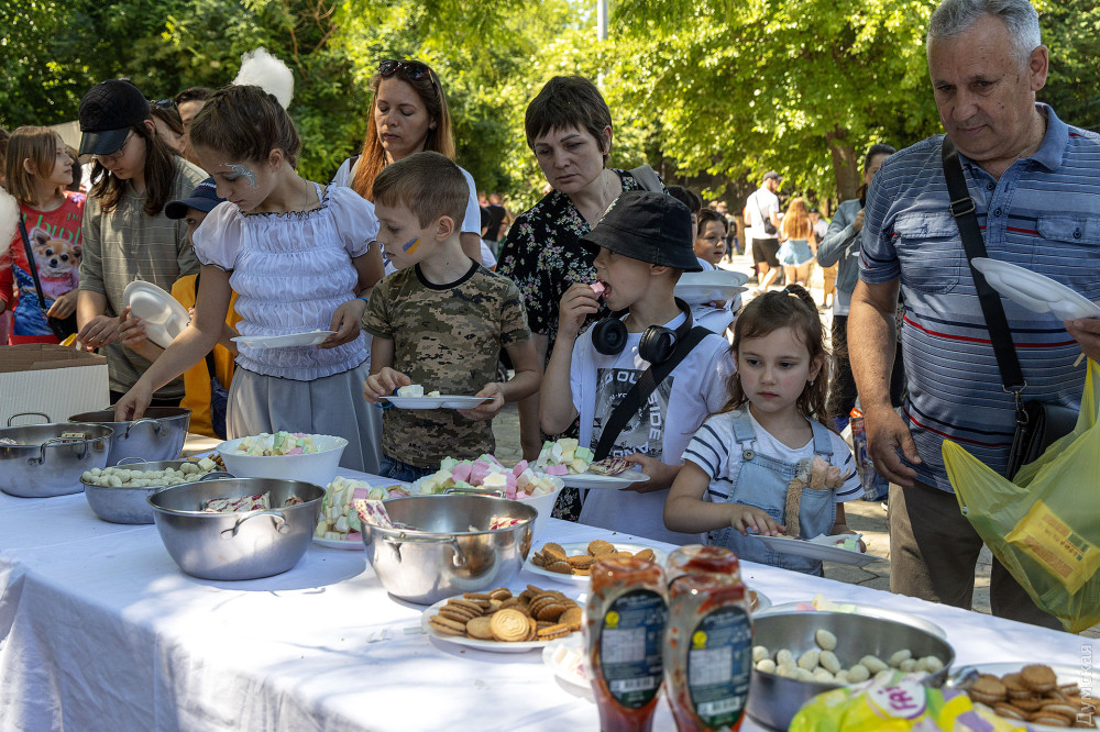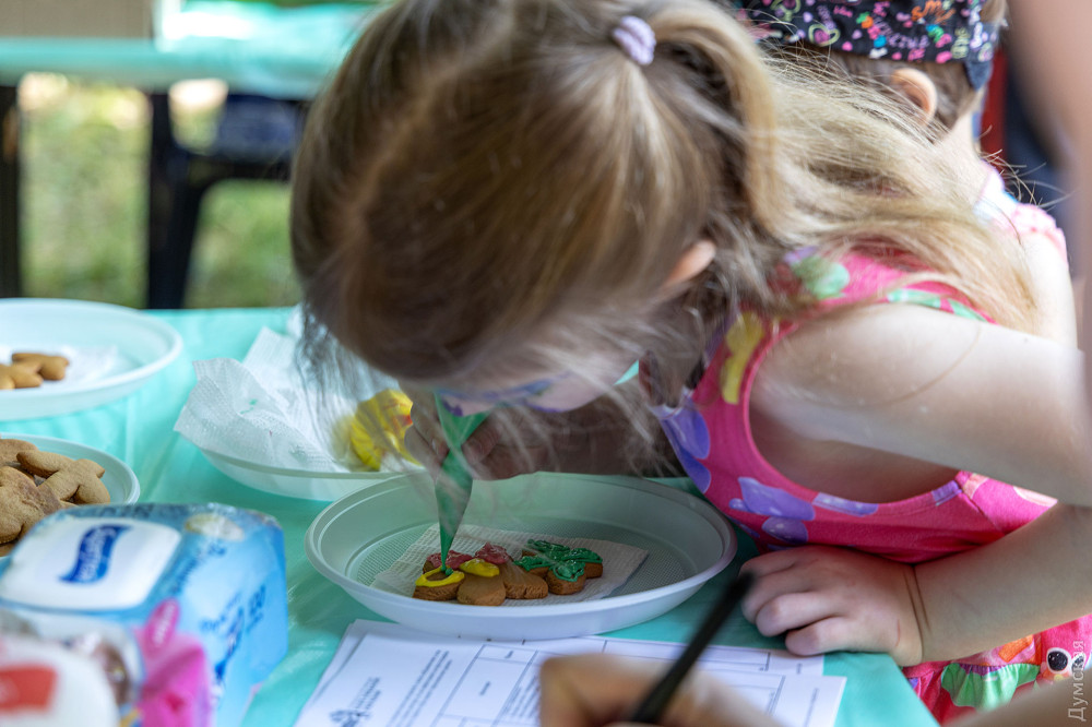 На галявинах і алейках волонтери проводили різноманітні майстер-класи з малювання, танців, різноманітні ігри, а біля вольєра слона можна було отримати безплатне частування: солодку вату, печиво і морозиво. Серед іншого юні одесити отримали можливість познайомитися з професіями поліцейського і рятувальника, а також зустрітися з військовослужбовцями, які захищають одеське небо від ворожих ракет і безпілотників.