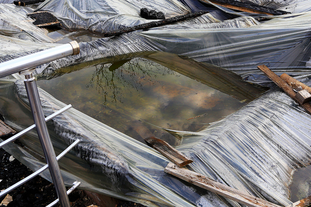 Пепелище затянуто полиэтиленовой пленкой и охраняется: несмотря на то, что эксперты там уже поработали, есть возможность, что на суде сторона защиты потребует провести повторную экспертизу, с привлечением независимых специалистов. Поэтому к месту трагедии подходить запрещено.