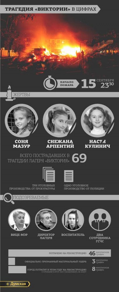 Ровно шесть месяцев прошло после трагедии в детском лагере «Виктория» на Даче Ковалевского. В ночь с 15 на 16 сентября 2017 года страшный пожар уничтожил спальный корпус №5 и унес три детские жизни. Погибли воспитанницы муниципального хореографического коллектива «Адель» — восьмилетняя София Мазур, девятилетняя Анастасия Кулинич и 12-летняя Снежана Арпентий. «Думская» выясняла, на какой стадии находится расследование случившегося, понес ли кто-то ответственность и что будет с детским учреждением дальше.