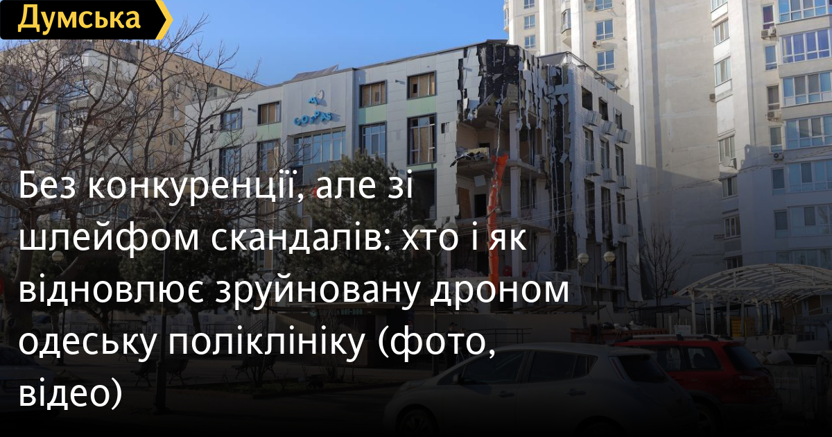 Без конкуренції, але зі шлейфом скандалів: хто і як відновлює зруйновану дроном одеську поліклініку (фото, відео)Через рік після руйнівного удару по дитячій поліклініці 6 ремонт будівлі нарешті увійшов в активну фазу. Однак за оптимістичними звітами мерії ховається знайомий підрядник — компанія «Одесголовпостач», відома скандальним тендером на реконструкцію Київського суду (конкурс на 100 мільйонів скасували лише після протестів). Виконати всі роботи компанія погодилася за 80 мільйонів гривень. У мерії кажуть, що якщо не буде проблем з грошима, то поліклініка зможе знову відкритися навіть раніше заявленого попередньо грудня 2027 року. Детальніше — у матеріалі «Думської». Будівлю планують повністю відремонтувати: замінити вікна та двері, а також привести до ладу підлогу, стіни та стелі. У поліклініці встановлять сучасну систему вентиляції, фасад оновлять та утеплять. Насамперед робітники демонтували вікна та двері. Крім того, дісталося й деяким стінам, у тому числі й фасадним. Через це деякі кабінети набули «панорамного вигляду». Перш ніж розпочинати ремонт, усі ці перекриття довелося демонтувати. Сьогодні триває штукатурка стін та інші роботи. У планах завершити ремонт у грудні 2027 року. Однак, як заявили «Думській» у мерії, поліклініку можуть відкрити й раніше. «Роботи розпочалися після отримання необхідних дозвільних документів — з 9 січня. Термін завершення робіт згідно з договором — грудень 2027 року. Однак за наявності достатнього обсягу бюджетного фінансування можливе дострокове завершення робіт», — йдеться в повідомленні. Крім того, у поліклініці залишається кілька кабінетів, що працюють — це, судячи з усього, бухгалтерія та відділ кадрів, а ось кав'ярня біля будівлі закрилася до кращих часів. Відео генерального директора поліклініки Сергія Горищака Тендер управління капітального будівництва оголосило ще наприкінці 2025 року. Виконати ремонтні роботи майже за 80 млн грн взялася компанія «Ремонтно-будівельна дільниця «Одесголовпостач». Засновник, кінцевий бенефіціар і власник трьох чвертей акцій — Олександр Фрідман. Як стало відомо «Думській», деякі роботи виконують не підрядники, а самі технічні працівники поліклініки. Крім того, є нарікання на рівень підготовки фахівців, які займаються ремонтом. За документами у фірми всього 27 співробітників, але так у всіх, вони укладають договори з субпідрядниками-ФОПами — це дешевше. Тендер безконкурентний, підрядник відомий, минулого року отримав бюджетних замовлень на 382 млн грн. Всього у нього їх на 1,5 млрд грн з 2017 року, різке зростання портфеля почалося у 2024 році. Останній підряд у «Одесголовпостача» — ремонт кабінету на Біржовій, 1. Цікаво, що компанія ставала переможцем у багатьох тендерах на поточний ремонт будівель, але більшість торгів скасовували через скарги інших учасників, які пропонували провести роботи за меншу суму. Один із прикладів — ремонт 39 школи за 100 млн грн, де переможцем стала «Одесголовпостач», відхилили, але тут через невідповідності в документації, які не були усунені. Повторний тендер не відбувся через рекомендації Бюро економічної безпеки, які виявили порушення. Нагадаємо, що «Одесголовпостач» — це та сама фірма, яка виграла тендер на реконструкцію Київського районного суду. Місто вирішило перебудувати за 106 млн гривень колишній дитячий садок, 