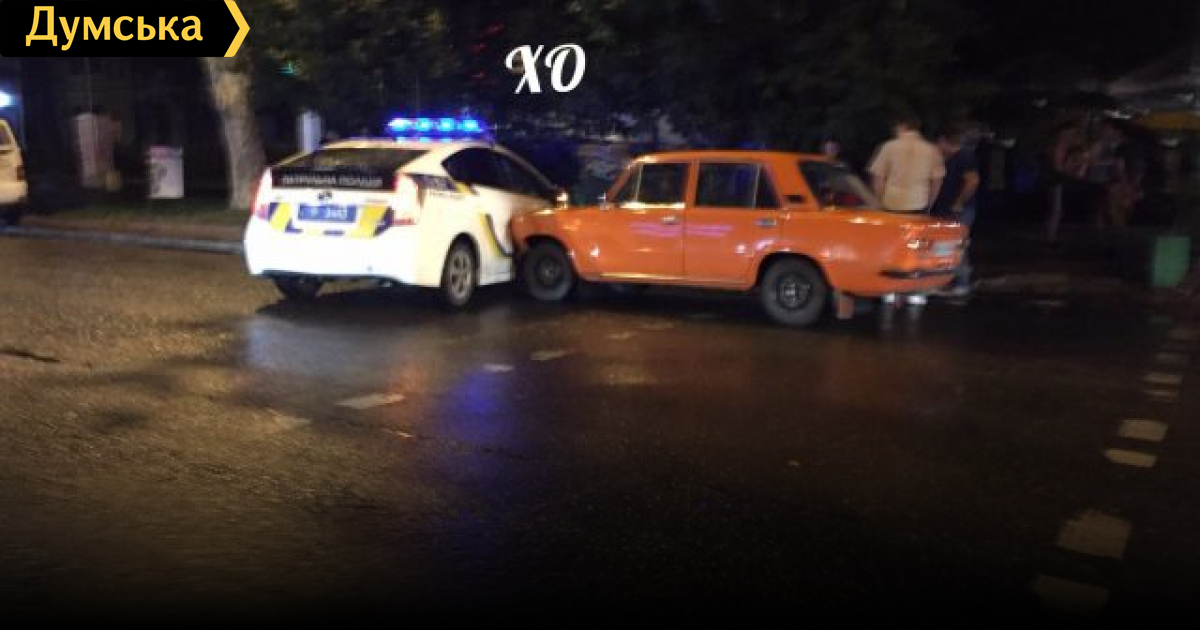 Вчера около 23 часов на проспекте Шевченко произошла автомобильная авария с участием служебного автомобиля полиции.