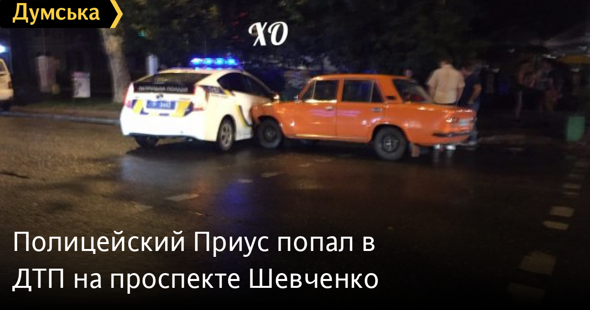 Вчера около 23 часов на проспекте Шевченко произошла автомобильная авария с участием служебного автомобиля полиции.