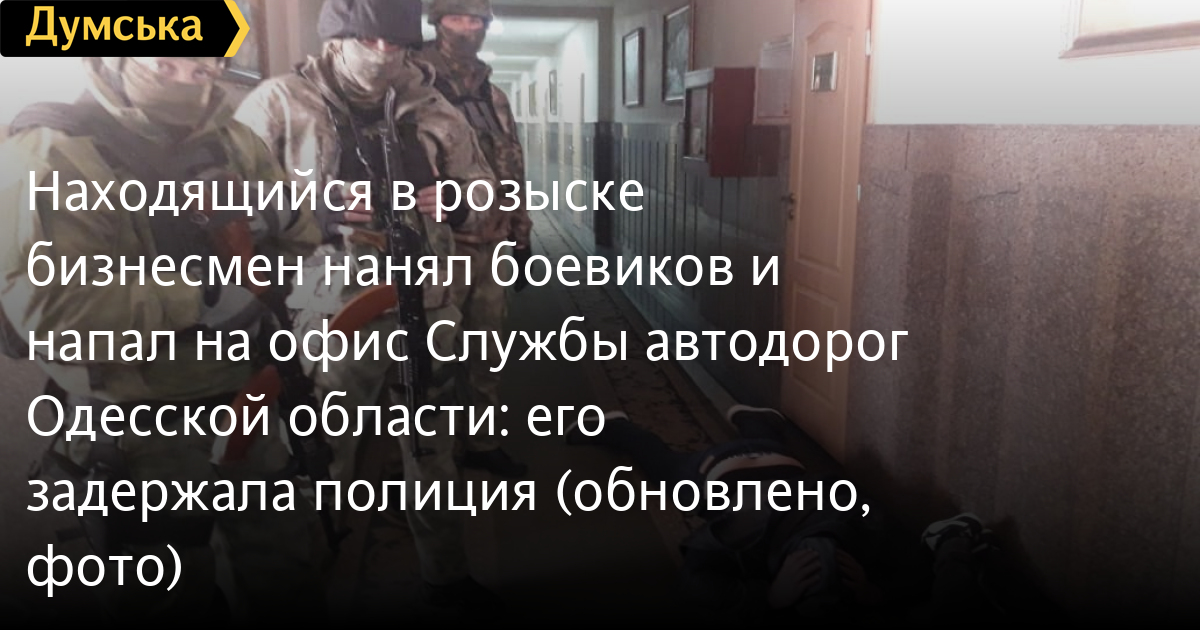 Группу вооруженных людей, которые ворвались в офис Службы автомобильных дорог Одесской области, задержали сегодня бойцы полицейского спецназа.