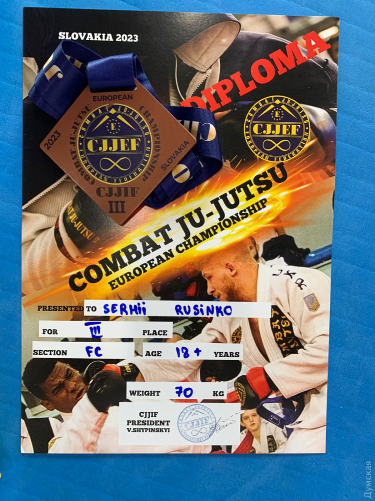 Два призових місця посів 29-річний рядовий батальйону поліції особливого призначення ГУНП в Одеській області Сергій Русинко на чемпіонаті Європи з комбат дзю-дзюцу (бойового джиу-джитсу).