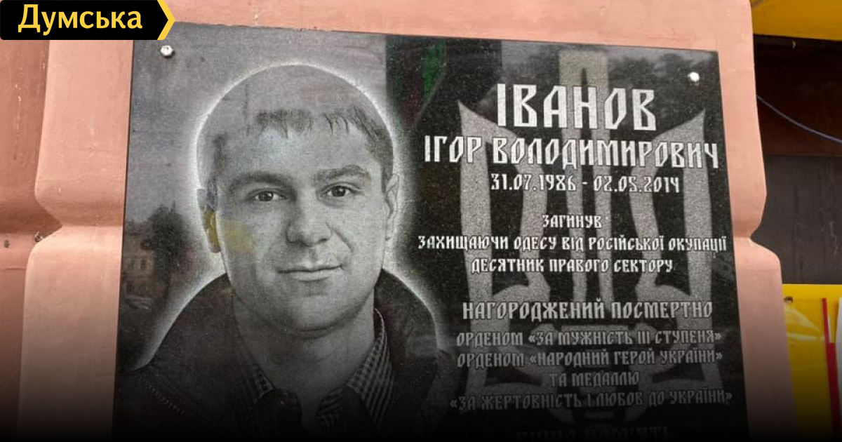 Вандалы залили зеленкой мемориальную доску погибшему 2 мая патриоту — полиция начала расследованиеПолиция расследует акт вандализма над памятной доской в центре Одессы. Сообщение о том, что на Преображенской улице неизвестные облили зеленкой табличку, установленную на доме в том месте, где 2 мая 2014 года украинский активист и патриот Игорь Иванов, поступил утром 2 сентября. Как сообщили в пресс-службе Нацполиции Одесской области, сведения по данному факту зарегистрированы в установленном законом порядке. Обстоятельства происшествия и причастные к нему лица устанавливаются. Между тем активисты уже очистили мемориальную доску от зеленки. Фото Демьяна Ганула СМЕРТЬ РОСІЙСЬКИМ ОКУПАНТАМ! Помітили помилку? Виділяйте слова з помилкою та натискайте control-enter