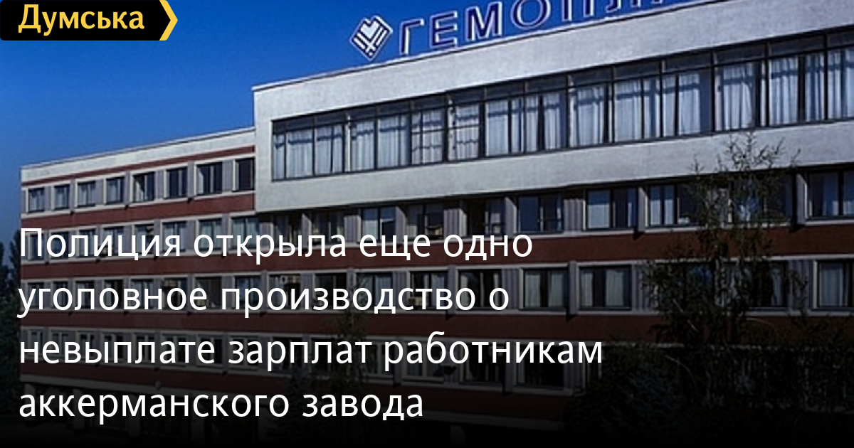 Полиция Белгорода-Днестровского открыла уголовное производство по ч.1 ст.175 УК Украины (невыплата заработной платы) из-за полугодичной задержки оплаты труда работникам завода «Гемопласт».