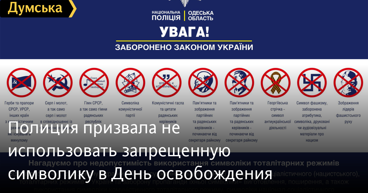 Главное управление Нацполиции в Одесской области напоминает о недопустимости использования запрещенной символики во время празднования 75-летия освобождения Одессы от фашистских захватчиков.