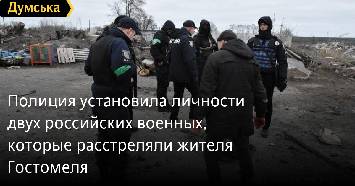Поліція встановила особи двох російських військових, які розстріляли жителя ГостомеляПоліція завершила досудове розслідування і встановила особисті дані двох російських солдатів, які в березні 2022 року вбили жителя Гостомеля за те, що він відмовився розвантажувати для окупантів боєприпаси. Про це повідомили в Міністерстві внутрішніх справ України. Встановлено, що рашисти під час окупації Гостомеля облаштували тимчасовий пункт базування на території притулку для тварин. Вони привезли туди вантажівкою боєприпаси і намагалися змусити місцевого жителя їх розвантажувати. Чоловік категорично відмовився допомагати загарбникам. Після цього російський 27-річний командир наказав своєму 24-річному бійцю розстріляти українця. Той кілька разів вистрілив, потерпілий помер на місці. Двом окупантам інкримінують скоєння злочину, передбаченого ч. 2 ст. 438 Кримінального кодексу України (порушення законів та звичаїв війни). Їм загрожує до 15 років в'язниці або довічний термін. Поки вони не затримані, суд розгляне їхню справу і винесе вирок заочно. СМЕРТЬ РОСІЙСЬКИМ ОКУПАНТАМ! Помітили помилку? Виділяйте слова з помилкою та натискайте control-enter |