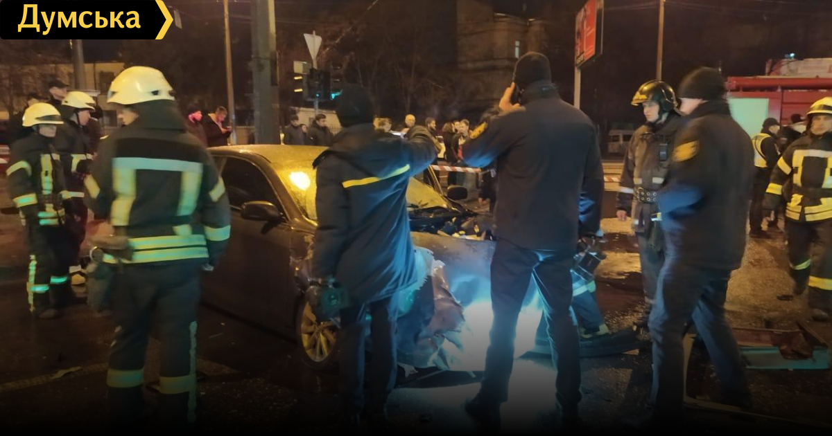В ГУНП сообщили, что «Тойота» протаранила BMW, который в результате загорелся. Немецкий автомобиль отбросило на три другие машины – Mercedes, Volkswagen и автобус «БАЗ», после чего BMW загорелся.