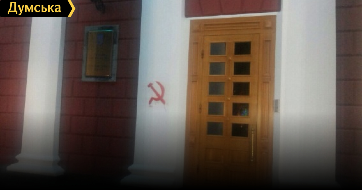 Полиция задержала хулигана, нарисовавшего советскую символику у входа в Одесский горсовет