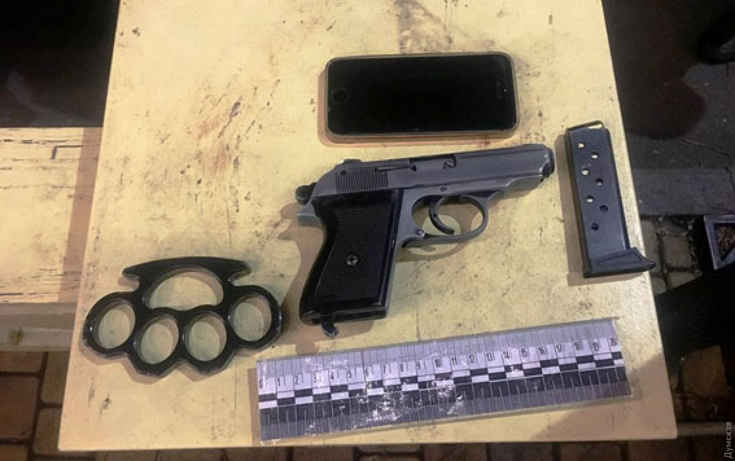Во время задержания у иностранца были обнаружены и изъяты пистолет и холодное оружие. Изъятое направлено на экспертизу.