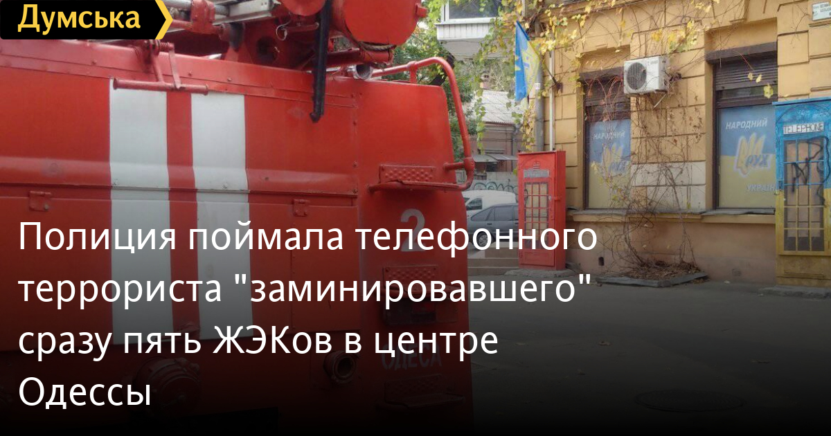 Полиция поймала телефонного террориста «заминировавшего» сразу пять ЖЭКов в центре ОдессыПравоохранители задержали злоумышленника, который вчера, 30 октября, сообщил в полицию о минировании пяти зданий в Приморском районе Одессы — на улицах Большой Арнаутской, 10 Апреля, Бунина и Александровском проспекте. Как сообщила пресс-служба ГУНП, личность подозреваемого в телефонном терроризме установили в тот же день. Им оказался 56-летний одессит. Вскоре он был задержан. Открыто уголовное производство по ч.1 ст. 259 УК Украины (заведомо неправдивое сообщение об угрозе безопасности граждан). Мужчина рассказал, что «заминировал» здания и помещения учреждения, в котором раньше работал. Как стало известно «Думской», по указанным адресам расположены участки ЖКС «Порто-Франковский». Напомним, 30 октября, в 11:21 на спецлинию «102» поступило анонимное сообщение о минировании сразу пяти зданий в Приморском районе Одессы. Взрывотехники и кинологи с собаками проверили все пять зданий. Опасных веществ не обнаружено. СМЕРТЬ РОССИЙСКИМ ОККУПАНТАМ! Заметили ошибку? Выделяйте слова с ошибкой и нажимайте control-enter Новости по этой теме: 7 ноября 2022: В Одессе телефонный террорист сообщил о бомбе в суде 26 января 2022: В Одессе полиция задержала школьника, который сообщил о «минировании» учебного заведения (видео) 24 января 2022: В Одессе "заминировали" все школы и торговые центры 18 января 2022: "Удачных поисков, федералы!": к новому всплеску "телефонного терроризма" причастны россияне 18 января 2022: В одесском аэропорту искали бомбу 13 января 2022: В Одессе четвертый раз за неделю минируют торговые центры |