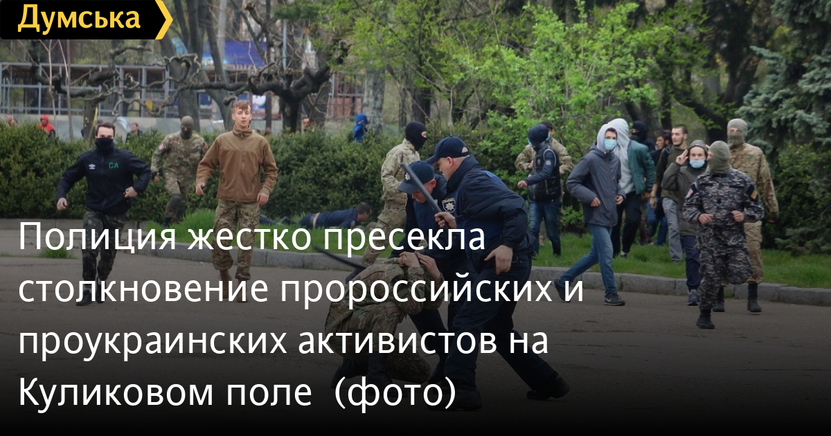 И новая драка в День Освобождения. Около полусотни «куликовцев» после инцидента на Аллее Славы пришли к Дому профсоюзов на Куликовом поле, где к ним пыталась прорваться группа политических оппонентов в камуфляже и масках. Столкновение с применением силы и спецсредств весьма эффективно пресекли сотрудники полиции и бойцы Нацгвардии.