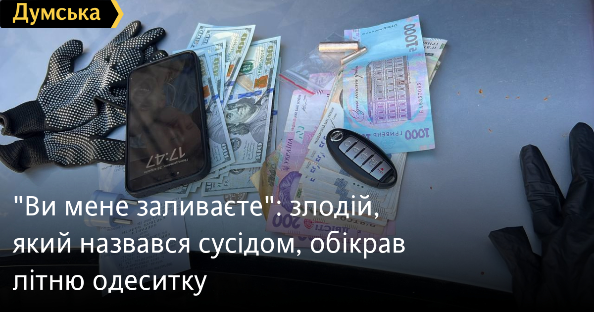 «Ви мене заливаєте»: злодій, який назвався сусідом, обікрав літню одеситкуЗловмисника, який, назвавшись сусідом, проник у квартиру літньої одеситки та обікрав її, затримали поліцейські. Як повідомляє пресслужба обласної поліції, 24 квітня до правоохоронців звернулася мешканка багатоповерхівки на проспекті Добровольського і повідомила, що невідомий чоловік викрав з її квартири понад шість тисяч доларів США та коштовності на суму понад 200 тисяч гривень. Поліцейські встановили: зловмисник, побачивши на сходах літню жінку, яка поверталася додому, відрекомендувався сусідом і заявив, що вона його заливає. Та впустила громадянина до оселі та на його прохання дала 500 гривень нібито на придбання матеріалів для лагодження несправної труби. Насправді це був лише привід для правопорушника, щоб простежити, звідки господиня діставатиме кошти. Надалі, вдаючи із себе фахівця, який знається на сантехніці та усуває несправність, чоловік відволік увагу 76-річної жінки та непомітно викрав із сімейної схованки гроші й цінне майно. Їхню відсутність потерпіла помітила, коли «сусід» пішов. Маючи прикмети зловмисника, правоохоронці протягом години встановили його особу та місцезнаходження. Чоловіка затримали в одному з магазинів у центрі міста, коли він витрачав здобуті злочинним шляхом гроші на брендові гаджети. 44-річний фігурант — уродженець іншої області, який кілька місяців тому оселився в Одесі. У нього вилучили викрадені гроші та частину коштовностей. Місцезнаходження ще частини викраденого майна встановлюється. Слідчі повідомили правопорушникові про підозру в крадіжці, вчиненій в умовах воєнного стану (ч. 4 ст. 185 Кримінального кодексу України). Чоловіка перевіряють на причетність до низки аналогічних злочинів, скоєних у різних районах Одеси. Правоохоронці просять громадян, які, можливо, потрапили в подібну ситуацію, звернутися до поліції за номером «102». Помітили помилку? Виділяйте слова з помилкою та натискайте control-enter Новини по цій темі: 29 липня 2025: В Усатово Одеської області сталася перестрілка: поліція працює на місці (відео, оновлено) 28 липня 2025: П'яний на "Ягуарі" або гіпертонік? Звільнений топ-посадовець одеської поліції хоче повернутися на службу 19 червня 2025: Дівчинку, яку шукали сотні одеситів, знайшли вбитою: поліція працює з чоловіком, ймовірно причетним до загибелі 27 травня 2025: Увели гектар в університету: на Одещині засудили земельних аферистів, але без посадки і Хвоста |