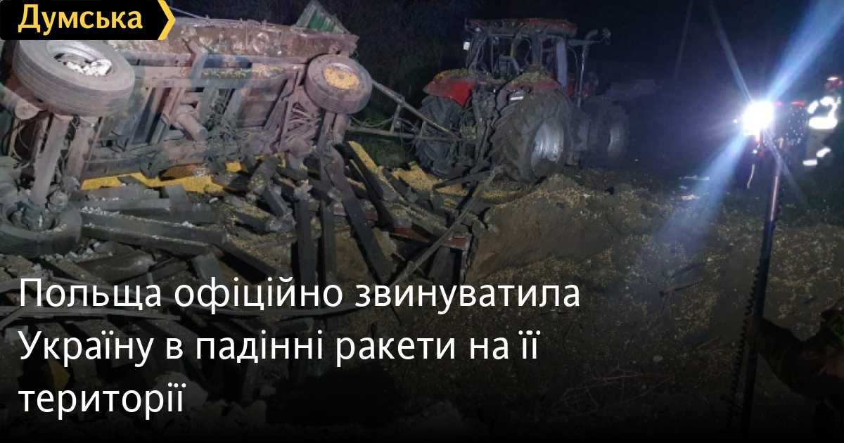 Міністр юстиції Польщі Збігнєв Зьобро заявив, що результати розслідування падіння ракети на території Люблінського воєводства в листопаді 2022 року, унаслідок чого загинули двоє цивільних, вказують на те, що ракету було випущено Україною.
