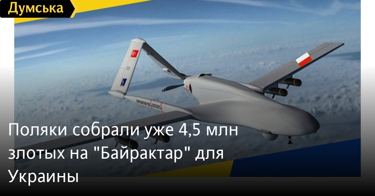 Поляки собрали уже почти 4,5 млн из 22,5 млн злотых на покупку беспилотника «Байрактар» для Украинской армии. Об этом сообщила вице-спикер Верховной Рады Украины Елена Кондратюк. По ее словам, «донаты» для поддержки украинской армии отправили более 40 тысяч жителей Польши. «Осталось собрать еще 18 млн злотых. Фантастическая поддержка и солидарность польского народа с украинским войдет в новейшую историю наших отношений!» — отметила Кондратюк. Необходимую сумму поляки намерены собрать за 25 дней. СМЕРТЬ РОСІЙСЬКИМ ОКУПАНТАМ! Помітили помилку? Виділяйте слова з помилкою та натискайте control-enter |