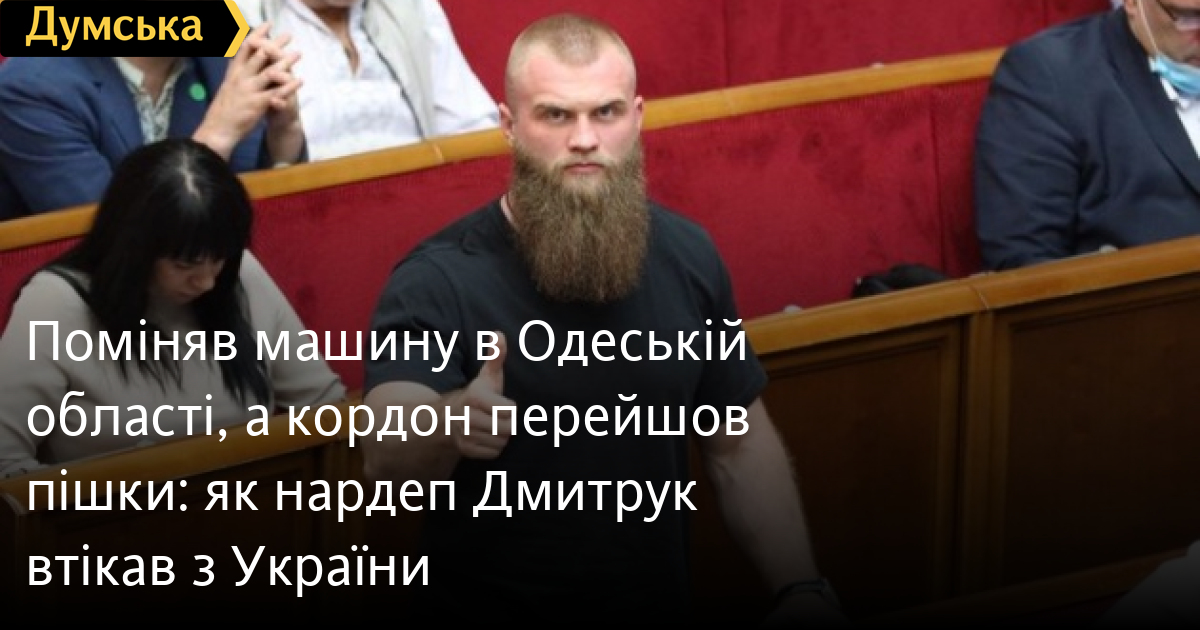 Поміняв машину в Одеській області, а кордон перейшов пішки: як нардеп Дмитрук втікав з УкраїниНардеп Артем Дмитрук незаконно перетнув україно-молдовський кордон 23 серпня поблизу пункту пропуску «Павлівка» в Одеській області. Схему переправлення було ретельно сплановано: депутат виїхав із Києва на Одещину, у Роздільнянському районі пересів в інше авто, яке доправило його до кордону з Придністровською ділянкою Молдови, де він пішки покинув Україну, повідомили в Офісі генпрокурора. Трьом особам, які допомагали Дмитрукові покинути країну, оголосили про підозру у скоєнні злочинів, одного з них затримано. «Організатору незаконного переправлення через кордон, а також особі, яка доставила депутата до кордону, повідомлено про підозру заочно у зв'язку з їхнім приховуванням. Ще одного учасника схеми, який виконував роль провідника, затримали. Вирішується питання про обрання йому запобіжного заходу у вигляді тримання під вартою», — зазначили в Офісі генпрокурора. Дії фігурантів кваліфіковано за ч. 2 ст. 332 КК України — організація незаконного переправлення осіб через державний кордон України за попередньою змовою групою осіб. В учасників схеми провели обшуки, слідство триває. Нардепа Артема Дмитрука, обраного від президентської партії «Слуга народу», оголосили в міжнародний розшук 29 серпня. Читайте також: «Втеча Дмитрука: Київському району Одеси традиційно не щастить із нардепами-мажоритарниками» За інформацією слідства, Дмитрук зі спільниками в Одесі напав на співробітника правоохоронного органу, який перебував при виконанні. Він побив його і намагався викрасти в нього зброю. Ще один випадок був у Києві — там у депутата виникла сварка з військовим, під час якої Дмитрук завдав йому кілька ударів, зокрема в голову. Нардепу оголосили про підозру відразу за чотирма статтями Кримінального кодексу України. Йому інкримінують організований груповий напад на працівника правоохоронного органу (ч. 2 ст. 345 КК України), замах на викрадення вогнепальної зброї групою осіб (ч. 1 ст. 262), побиття військовослужбовця (ч. 1 ст. 122) і хуліганство (ч. 1 ст. 296). Сам Дмитрук заперечує всі звинувачення і заявляє, що влада дала команду його посадити. За даними ЗМІ, у Молдові нардеп-втікач надовго не затримався, він полетів до Риму через кишинівський аеропорт. СМЕРТЬ РОСІЙСЬКИМ ОКУПАНТАМ! Помітили помилку? Виділяйте слова з помилкою та натискайте control-enter