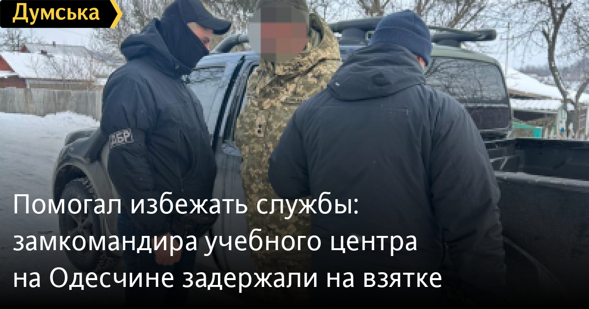 Помогал избежать службы: замкомандира учебного центра на Одесчине задержали на взяткеНа взятке попался заместитель командира одного из учебных центров в Одесской области. За деньги он помогал военным избежать службы. Как сообщили в пресс-службе Государственного бюро расследований, фигурант обращался к родственникам военнослужащих, которые проходили подготовку в учебном центре, и предлагал за вознаграждение договориться с руководством части об уклонении от военной службы. Если те отказывались платить — угрожал отправкой в самые горячие точки фронта. При его содействии мужчин сначала направляли в медучреждение на военно-врачебную комиссию, откуда они могли самовольно покинуть часть. Замкомандира центра задержали во время получения четырех тысяч долларов от родственницы одного из военнослужащих. Ему уже сообщили о подозрении в получении неправомерной выгоды за влияние на принятие решений должностными лицами (ч. 3 ст. 369-2 УК Украины). Решается вопрос об избрании меры пресечения. Мужчине грозит до 8 лет лишения свободы. СМЕРТЬ РОССИЙСКИМ ОККУПАНТАМ! Заметили ошибку? Выделяйте слова с ошибкой и нажимайте control-enter Новости по этой теме: 15 июля 2025: Требовала 400 евро за подделку документов для пенсии: в Одесской области чиновница попалась на взятке (фото, видео) 27 июня 2025: За 40 тыс. грн хотел купить секретные разработки: в Одессе задержали сотрудника частной фирмы 6 июня 2025: Требовал три тысячи долларов за справку об инвалидности: в Одессе задержали главврача больницы (фото) |